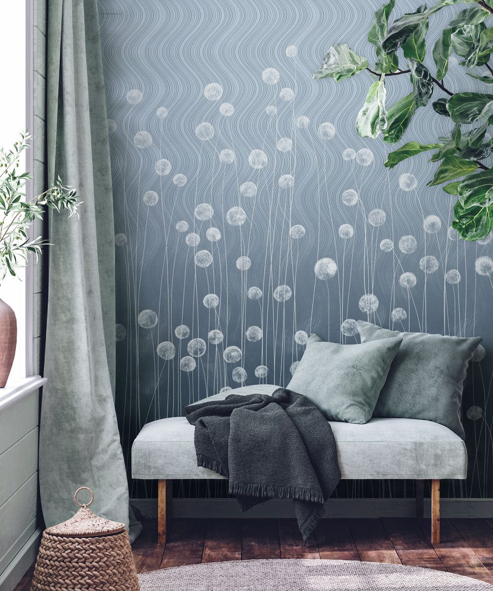 Gracefully capture the whimsy of nature with the Blue Starry Dandelion Wallpaper Mural. Delicate dandelion motifs float across a serene blue gradient, creating an enchanting atmosphere that suits both modern and vintage settings. The exquisite detailing and subtle wave patterns evoke a sense of tranquillity, making it an exquisite choice for sophisticated interiors.