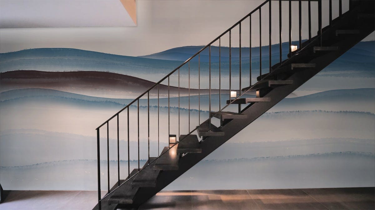 Get lost in these water colour waves, and create a soothing theme at home with these hand-painted blue shades water colour peaceful desert wallpaper mural, this degrading technique is a versatile design that will work with a range of rooms and styles. This unique design will add depth to your walls that will intrigue anyone who sees it. The design is so good for a room with calm mood, so you can use it in a living room with beige couches & curtains and navy-blue carpet. Also use it in a bedroom with brown wooden furniture to add more elegancy and modernity to your place. The design is so simple yet it works with different styles, our talented team will help you style you hoe, or your space with what you dream of.