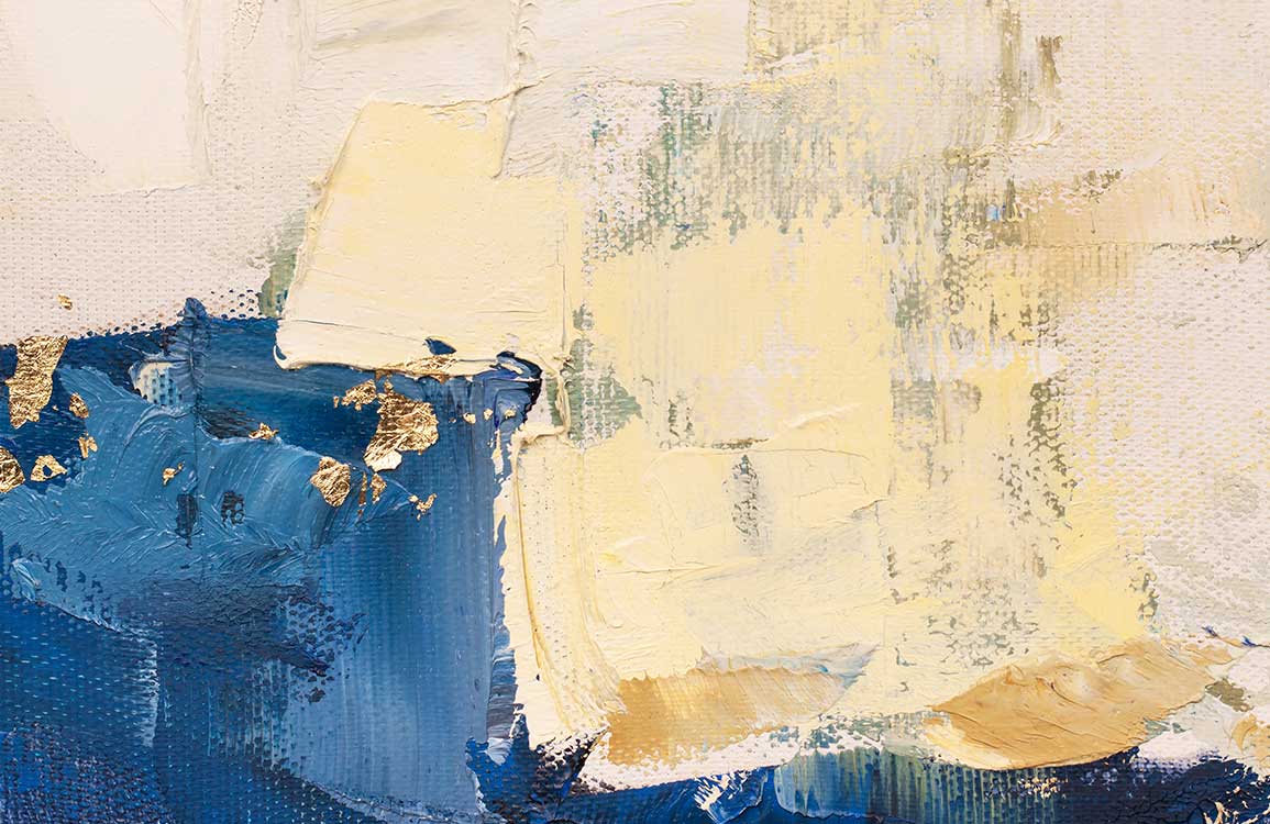 Create a unique space in your home with our blue & yellow painting wallpaper mural. This oil painting in blue in contrast with yellow will surely give it a strong and striking visual feeling to your accent wall. It will look great in your interiors. This wall mural will also perfectly match your modern furniture and home decorations.