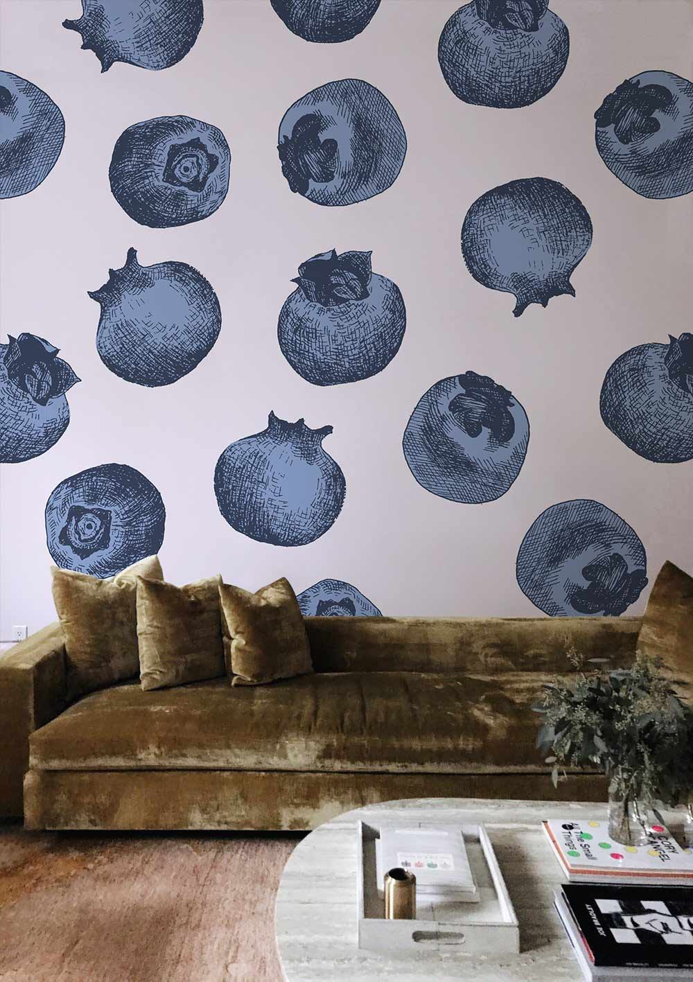 Want to give off colour and life to your walls? Bring home this wall-sized mural of blueberries on our Blueberries Mural Wallpaper. The fruits are drawn on a white background with a hand-sketched pattern. This vintage-styled wallpaper is designed to flaunt a sweet and summery touch to your interior, especially for those who want a more rustic and natural look in the kitchen, dining room, or living room. The most beautiful part is the drawn blueberries layout is sure to put a smile on your face and brighten up any wall space!