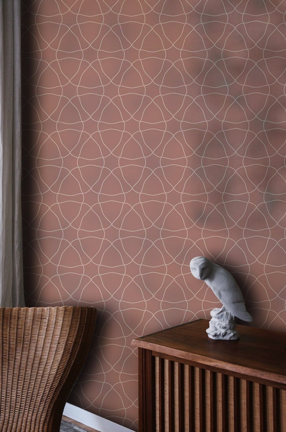 Immerse your space in a sophisticated blend of geometry and subtlety with the Bones Wallpaper Mural. Featuring a harmonious interlacing of delicate, curved lines set against a warm, earthy backdrop, this design evokes a sense of refined elegance and timeless charm. Perfect for enriching any room with an understated artistic touch.