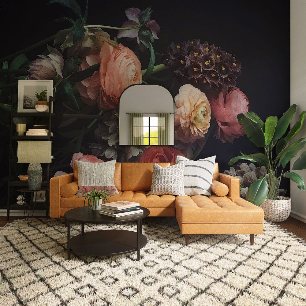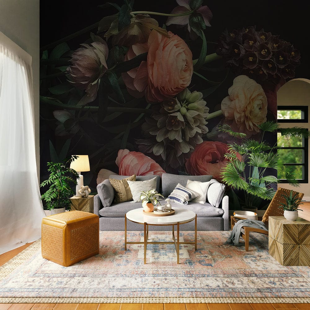Immerse your space in a blend of artistic elegance with the Bouquet in Dark Wallpaper Mural. This design showcases an exquisite arrangement of lush blooms against a deep, enigmatic backdrop, bringing a touch of classic sophistication to any room. The intricate details of the petals and leaves create a textural richness that draws the eye, making it a captivating centrepiece for interior décor. Suitable for those who appreciate timeless beauty, it subtly infuses a space with both drama and serenity, effortlessly fitting into various styles.