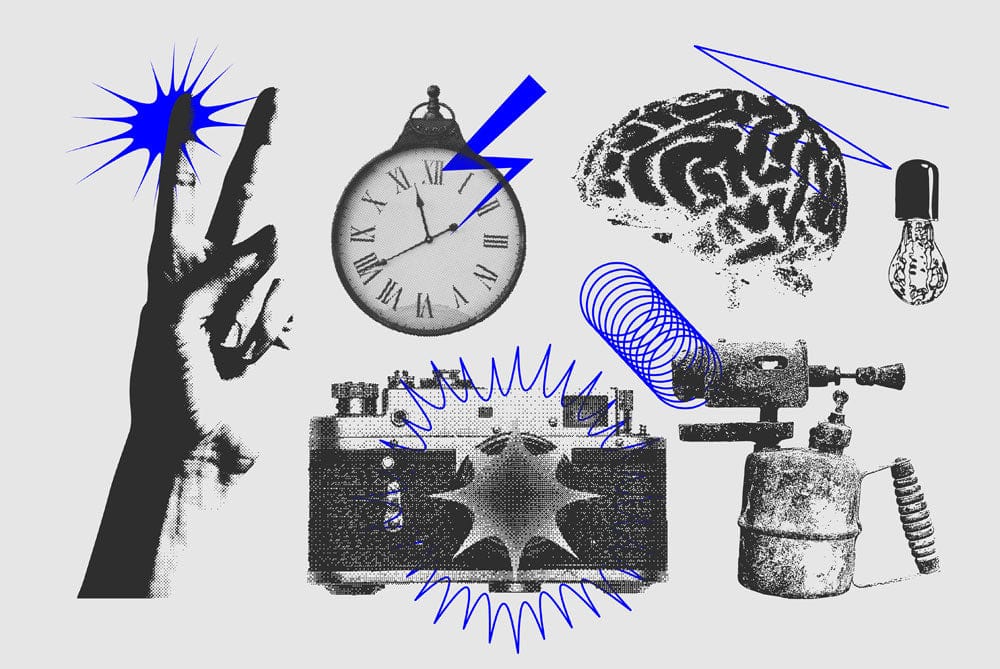 Brainstorm Time Wallpaper Mural presents a sophisticated collage that melds the intrigue of surrealism with the charm of vintage aesthetics. Its monochrome palette, punctuated by striking cobalt blue, creates a captivating narrative that suits diverse interior spaces. With intricate elements like clocks, brains, and abstract machinery, this piece invites contemplation and conversation, making it a versatile addition to modern or eclectic environments.