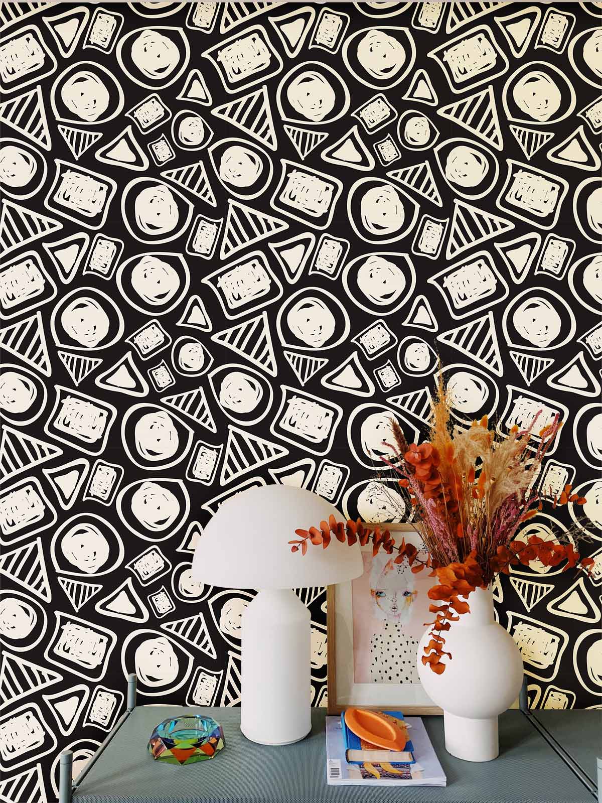 If your dining room or kitchen wall need a bold and stylish decor! This attractive bread and sandwich pattern wallpaper mural under back tone background is a perfect wall mural to transform boring space into something unique and eye-catching. Why not try it out and pair with modern furniture home decorations.