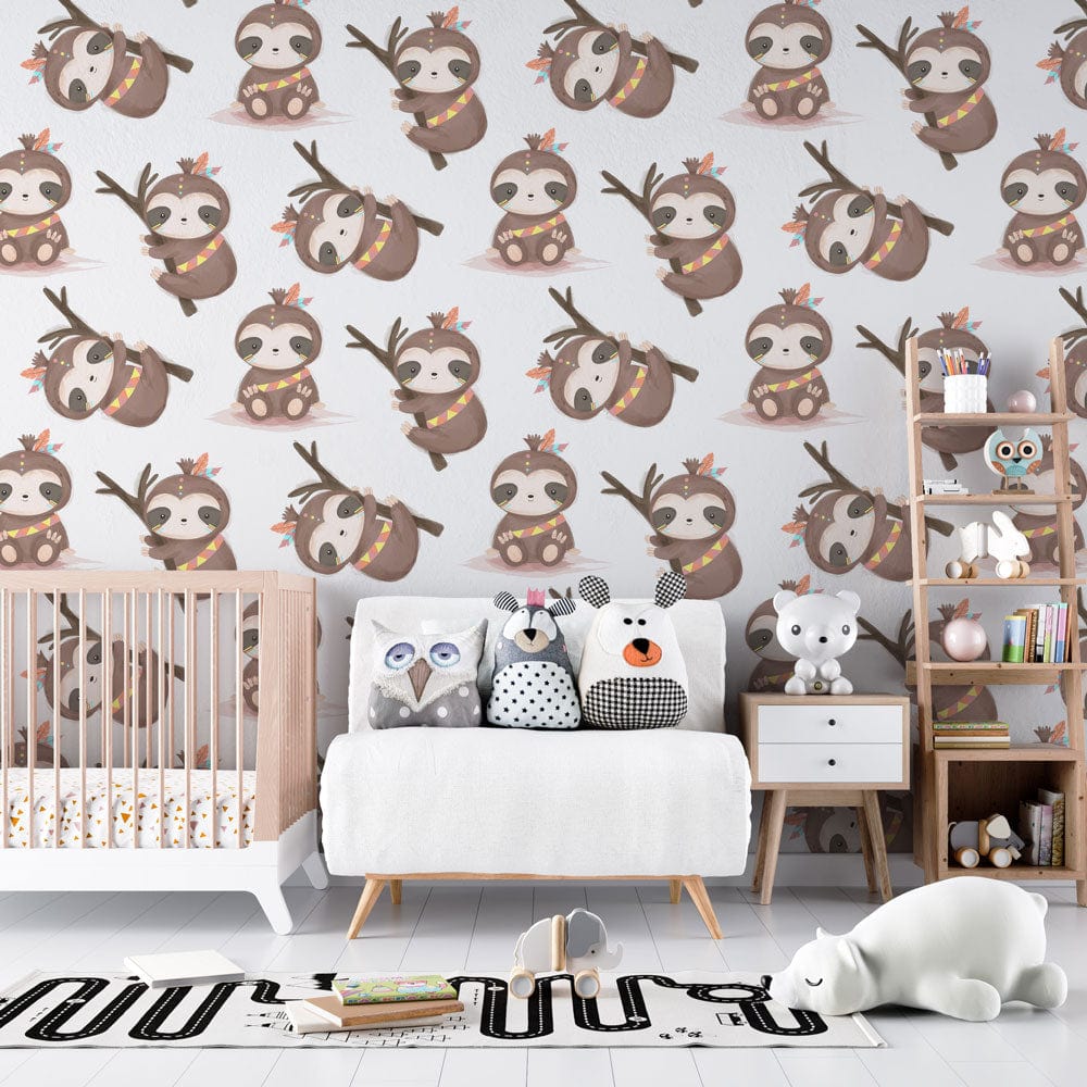 Introduce a serene charm to your interior with the Sloth Baby Wallpaper Mural. This delightful design showcases playful sloth illustrations adorned with subtle details. The gentle palette of earthy browns and creams creates a soothing backdrop, perfect for adding a whimsical touch to your space. Its intricate artistry and calming ambience make it an ideal choice for nurseries or children's rooms, effortlessly blending with both classic and contemporary styles.