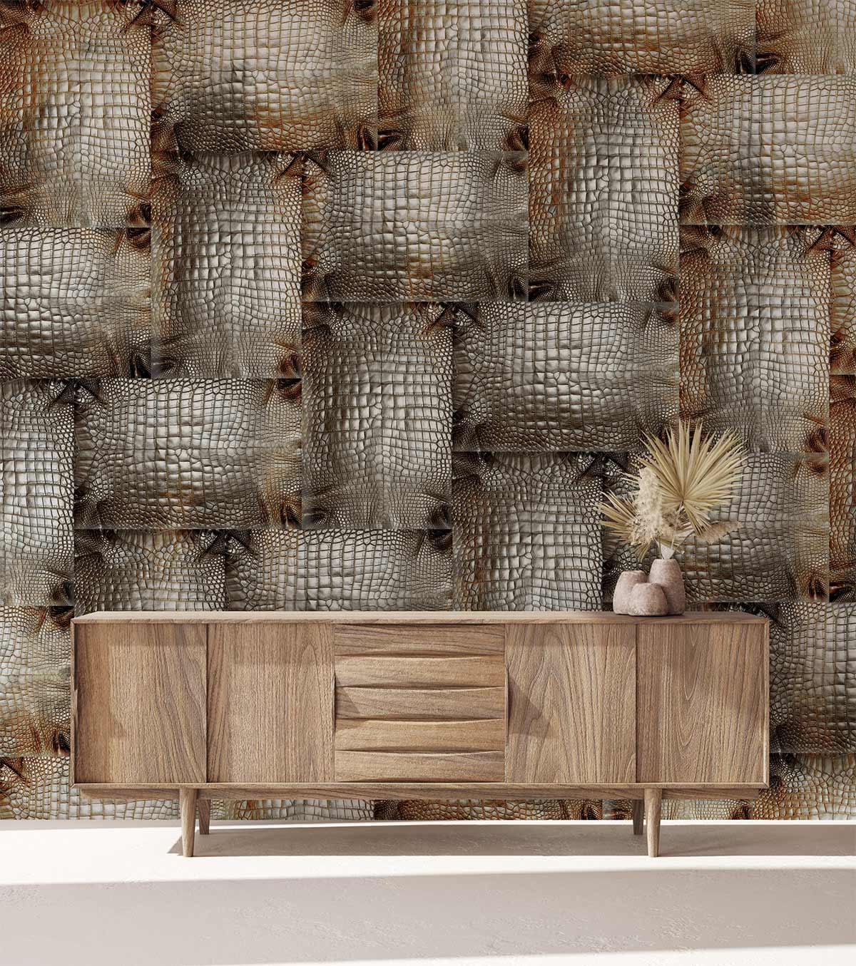 The Brown Snakeskin Knit Wallpaper Mural weaves natural elegance into your space with its intricate design that mirrors the subtle texture of reptilian skin. Its muted tones and detailed pattern offer a sophisticated backdrop, making it a versatile choice for diverse interiors. Perfectly suited to blend rustic charm with modern chic, this mural stands as a testament to timeless design.