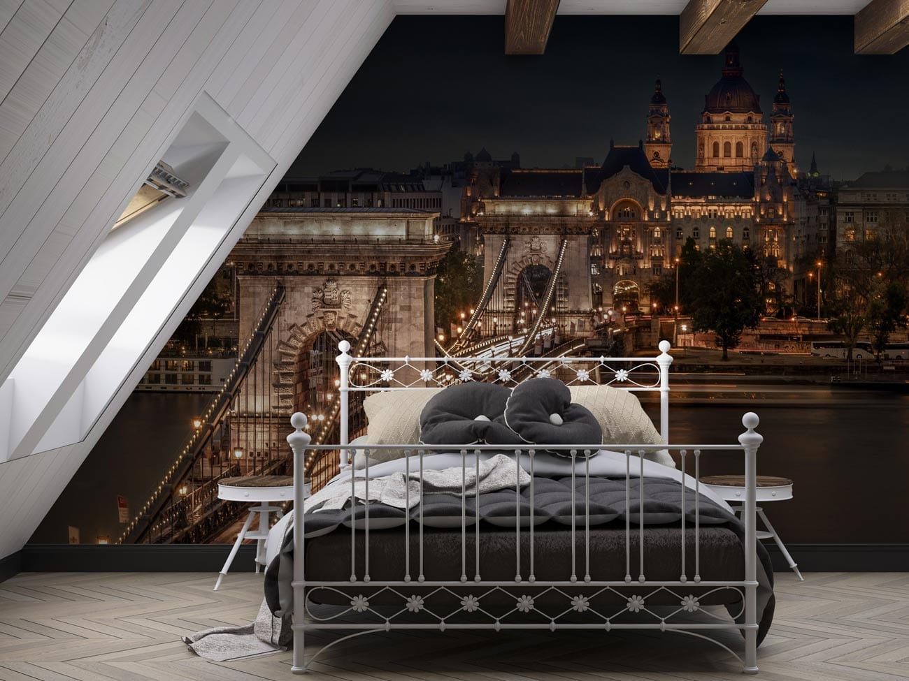 Immerse your room in the architectural grandeur and atmospheric glow captured in the Budapest Bridge Wallpaper Mural. With its intricate depiction of the city's iconic bridge and the majestic backdrop of historic buildings, this mural offers a window into the heart of Budapest by night. The seamless blend of soft, muted tones with striking details creates an ambience that is both sophisticated and timeless, making it a perfect addition to any interior looking to evoke a sense of cultural elegance and serenity.