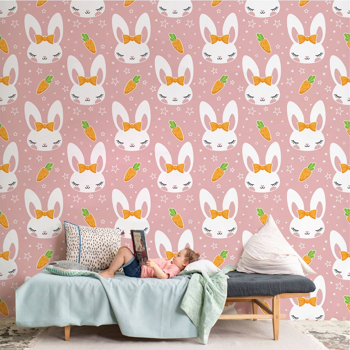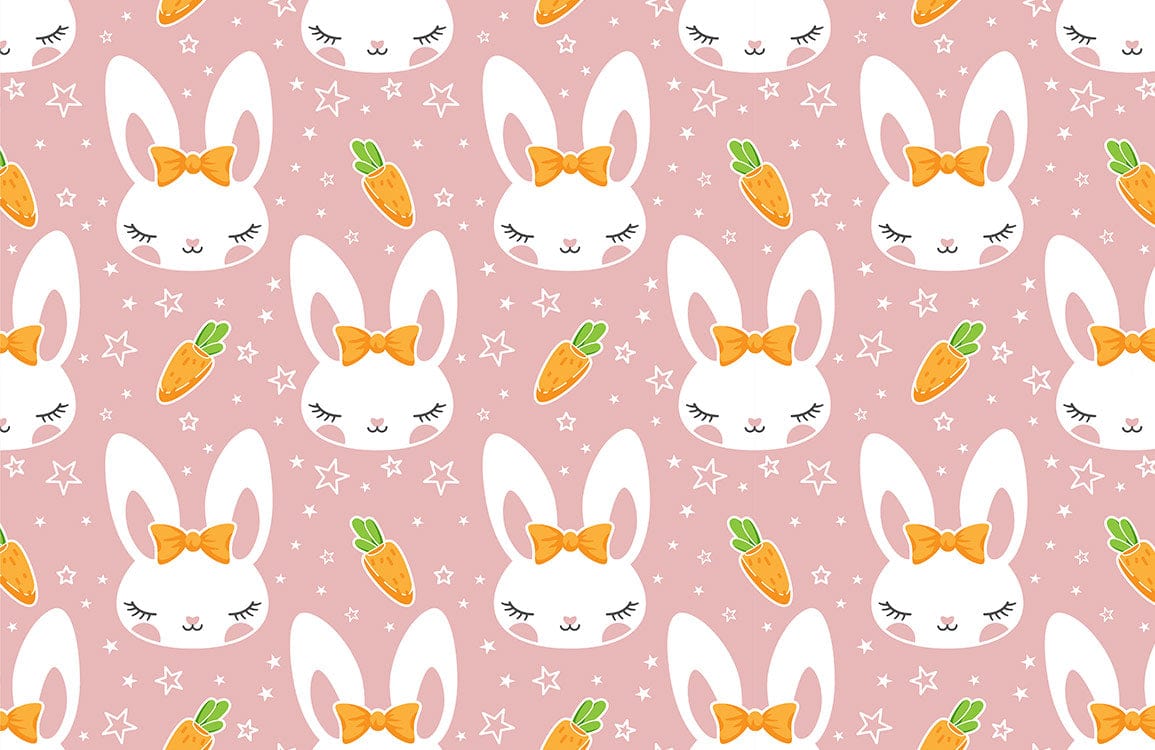 Immerse your space in playful charm with the Bunny & Carrot Wallpaper Mural, featuring delicate illustrations of serene bunnies and vibrant carrots. Set against a soft pink backdrop adorned with subtle stars, this mural brings a whimsical yet serene atmosphere to any room. Each element is crafted in fine detail, balancing charm with elegance, making it a perfect addition to nurseries or playful corners in your home.