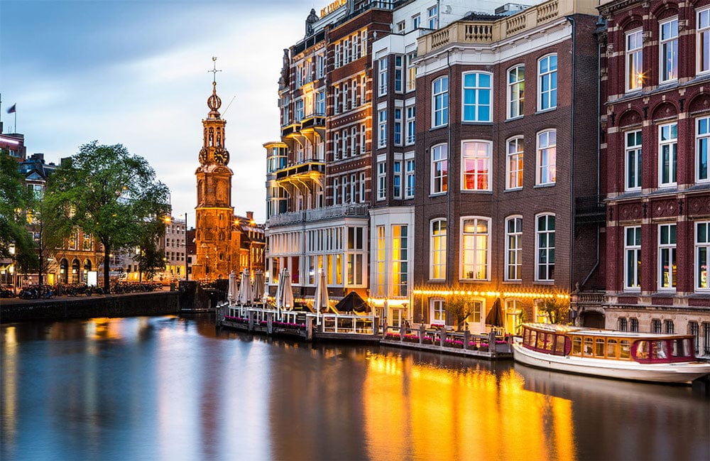 Immerse your space in the enchanting allure of the Amsterdam at Dusk Wallpaper Mural. This stunning piece captures the essence of Amsterdam's iconic canals under a captivating twilight glow. The mural features intricate architectural details bathed in the golden hues of street lights, juxtaposed against a serene waterway reflecting the vibrant skyline. Perfectly suited for both classic and contemporary interiors, this mural evokes a serene yet sophisticated ambience that brings the charm of old-world Europe into your home.
