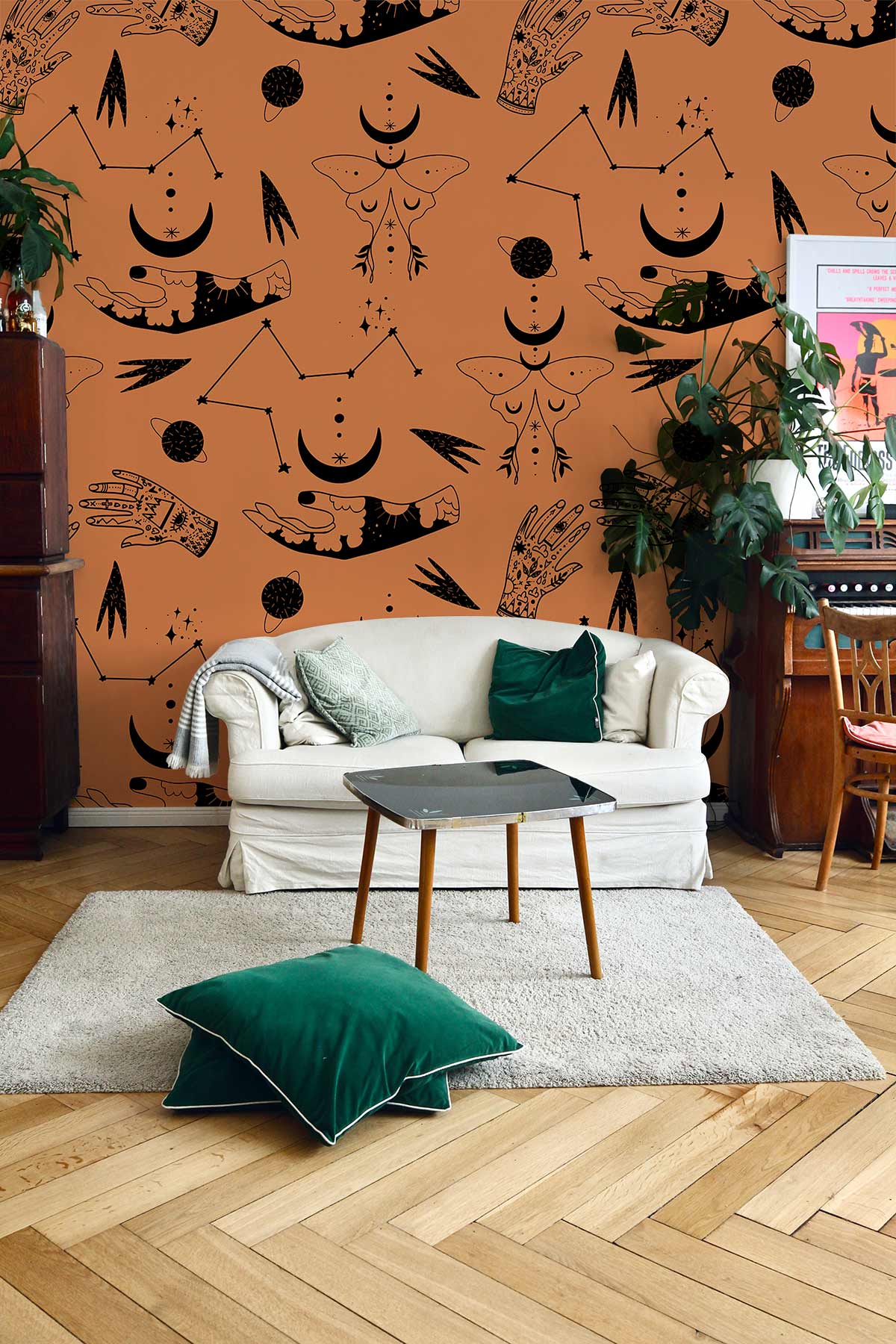 The Butterfly Divination Wallpaper Mural presents a harmonious blend of mystique and artistry, with intricate motifs featuring celestial patterns and ethereal silhouettes. Its sophisticated design, infused with a touch of the arcane, infuses your space with a sense of wonder and allure. The mural's textured finish adds depth, making it an elegant choice for any room seeking a distinct and timeless accent.