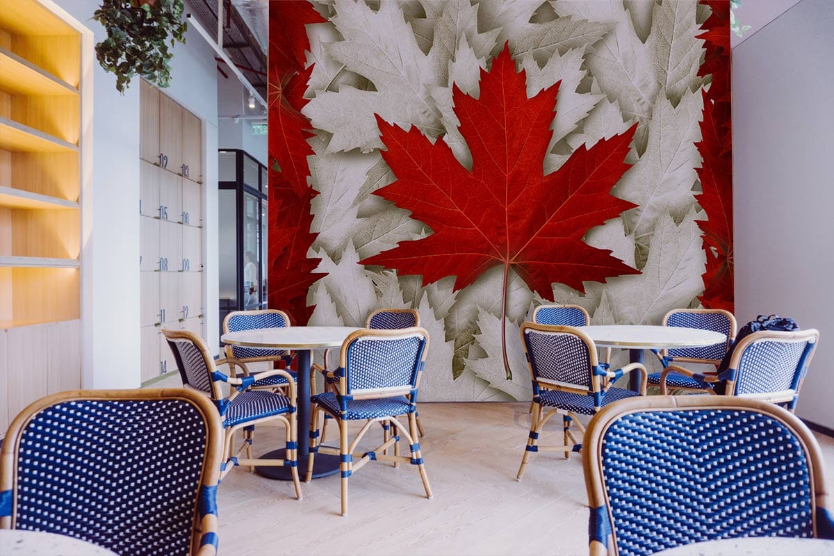 Proud of your Canadian heritage? Show it with our maple leaf flag design mural wallpaper. Honor the maple leaf, Canada's most iconic symbol, with this mural. It highlights Canadian heritage with a stylized tree inspired by one of the first modern Canadian flags and a red and white palette reminiscent of vintage Coca-Cola labels. This lovely decorating choice is sure to bring warmth to any room 鈥?it's perfect in a kitchen or dining room, or even as a striking backdrop in an office. Don't just make your home reflect who you are 鈥?make it shout it.