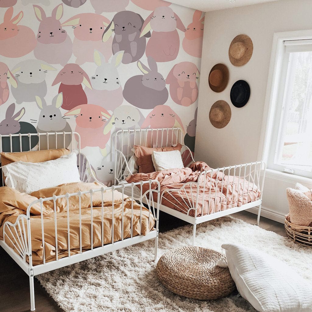 Add a bit of tropical flair to your home with our Carefree Rabbits Wallpaper Mural. This bunny wallpaper features lovely carefree rabbits with their happy and cheerful faces. A perfect interior for your playrooms, nurseries, and kids' rooms, this animal wallpaper can help create an inviting environment, allowing you to relax and enjoy yourself wherever you are. Whether your kids were born with a heart for bunnies or not, they'll be sure to love the cute pinky bunnies in this fun and vibrant mural design.