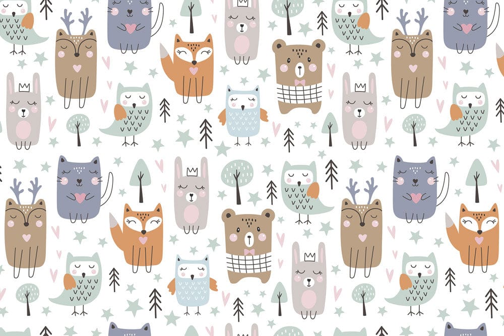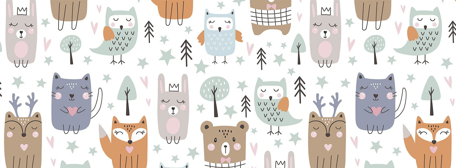 Our beautiful Cartoon Animals Wallpaper Mural is the perfect addition to any little boy's or girl's bedroom. With images of owls, dogs, and cats with stars patterned throughout a white background, this animal-themed wallpaper is designed to provide an outdoorsy feel to your little one's nursery with a forest-inspired pattern. The modern geometric layout will include a touch of fun and excitement to any space, while the vibrant colours will make a stylish statement.