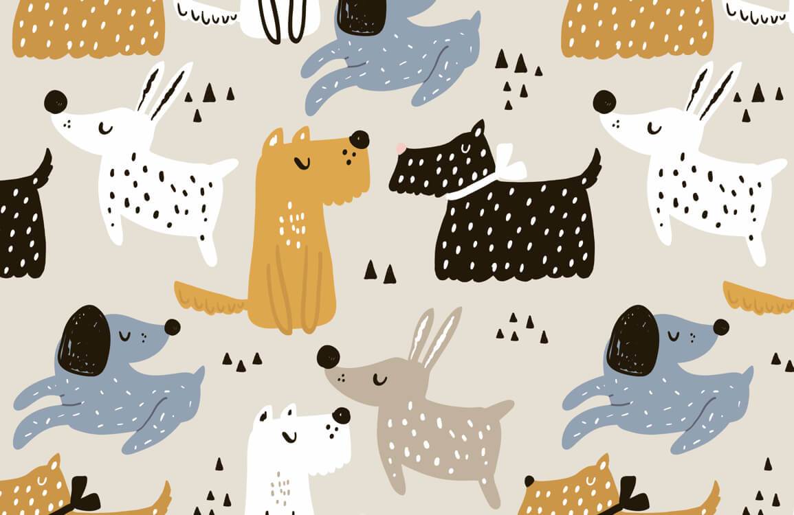 This charming Cartoon Dog Wallpaper Mural presents a playful parade of whimsical dogs, each with its own unique expression and pose, set against a soft cream background. The design strikes a balance between artistry and cheerfulness, perfect for adding a touch of personality to various interiors. Detailed textures and a mix of patterns lend an artistic flair that is both sophisticated and endearing, making it perfectly suited for a contemporary or eclectic space.