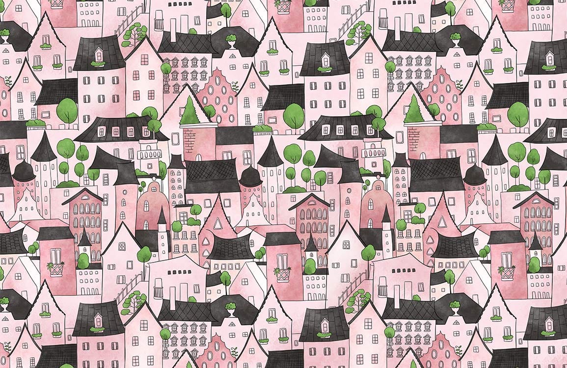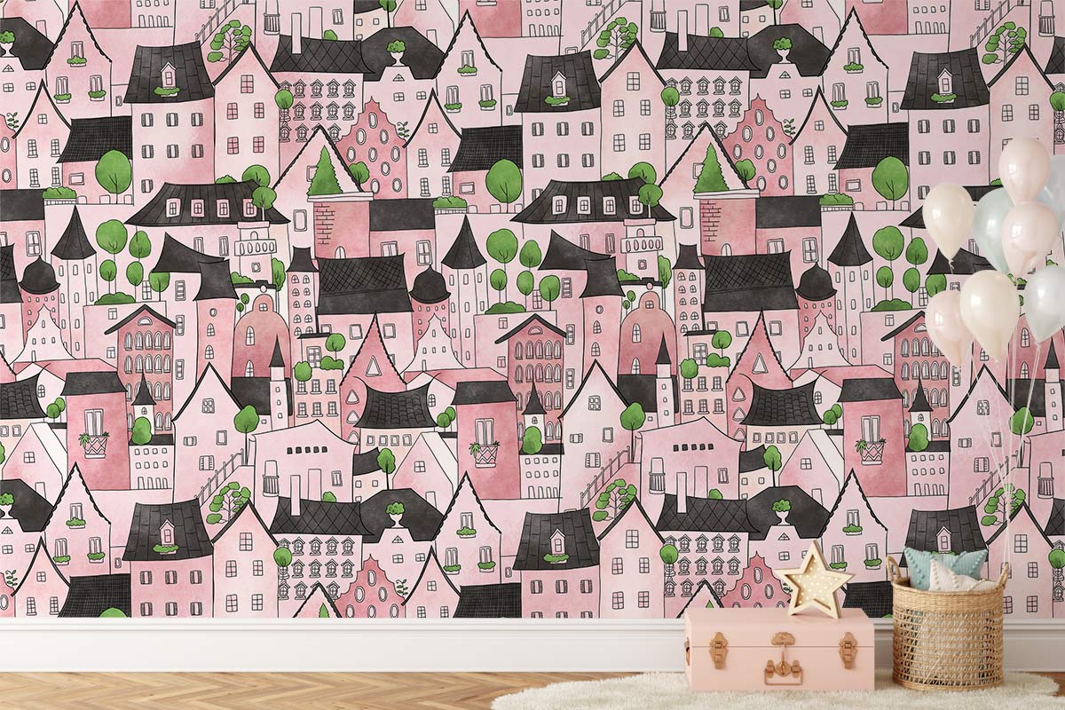 They say homes are warm and safe, ours are warm, safe and cute too. Keep your secrets and memories with our lovely homes mural wallpaper that shoes various homes yet sharing all same things still. Same love will be in every home. Warmness will still exist wherever the home is. home is not only 4 walls you can have your home in a friend or a lover who contains your and makes you feel safe like your real home. Enjoy felling the safety and warmness with our pinkish design of homes wallpaper which can suit adults, young girls, or teenagers鈥?rooms. You can also use this wallpaper at your real-estate company, or at your nursery or daily care hub. Be unique in choosing this wallpaper to your girls and make their room glow.