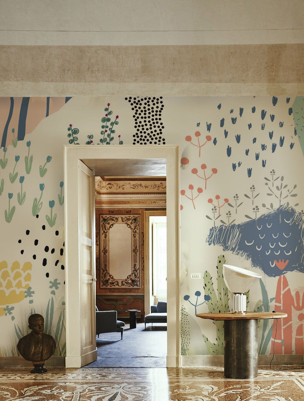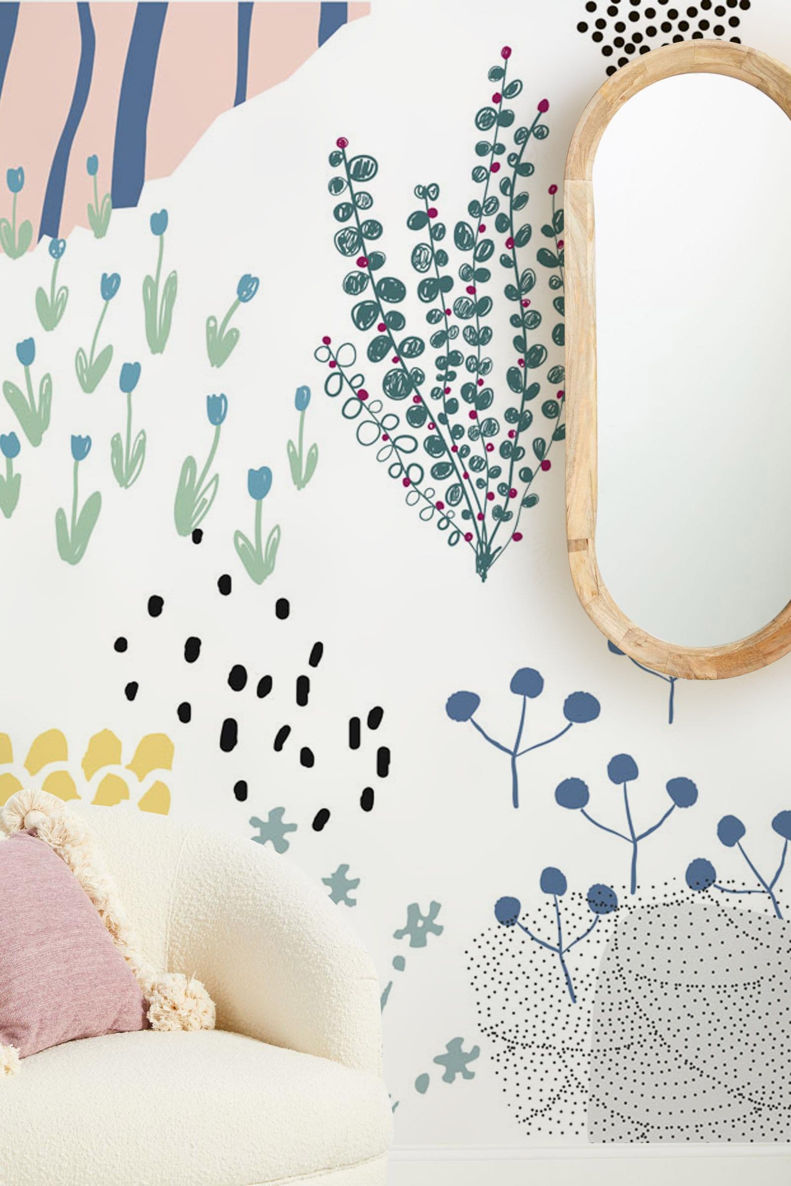 Immerse your space in artistic serenity with this hand-drawn plant wallpaper mural. Delicately illustrated with a medley of abstract botanicals, it infuses interiors with a graceful natural charm. The mural's subtle textures and whimsical details offer a refined backdrop, perfect for a variety of sophisticated settings.