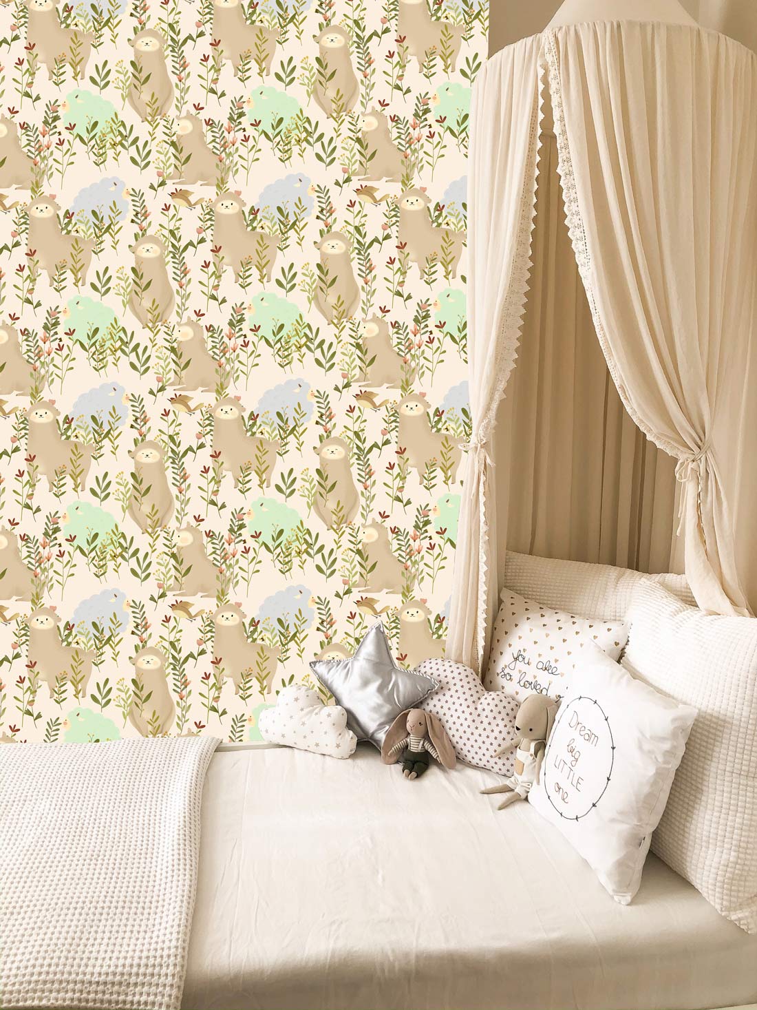 Inspire your children with our cartoon sheep wallpaper mural. This Wallpaper is designed in repeat patterns of cute sheep and green leaves, which is heart-melting and can bring the interior space a fresh appeal. Perfect wallpaper for kids room and baby nursery to revamp your rooms.