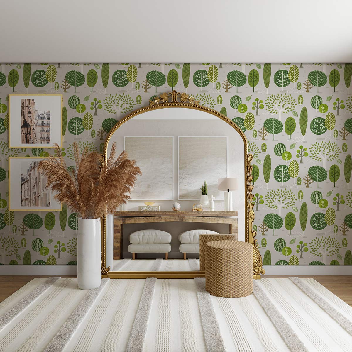 Decorate your room with our awesome collection of green trees wall murals. The vibrant feel lends a calming and soothing effect to your senses and allows you a close-to-nature feel. Breathe life and vitality in your living room or dining space with this versatile wallpaper as a wall covering and watch your space revamp itself instantly. Stay on trend by matching this fascinating natural magnificence with wooden or modern furniture style and live the look!