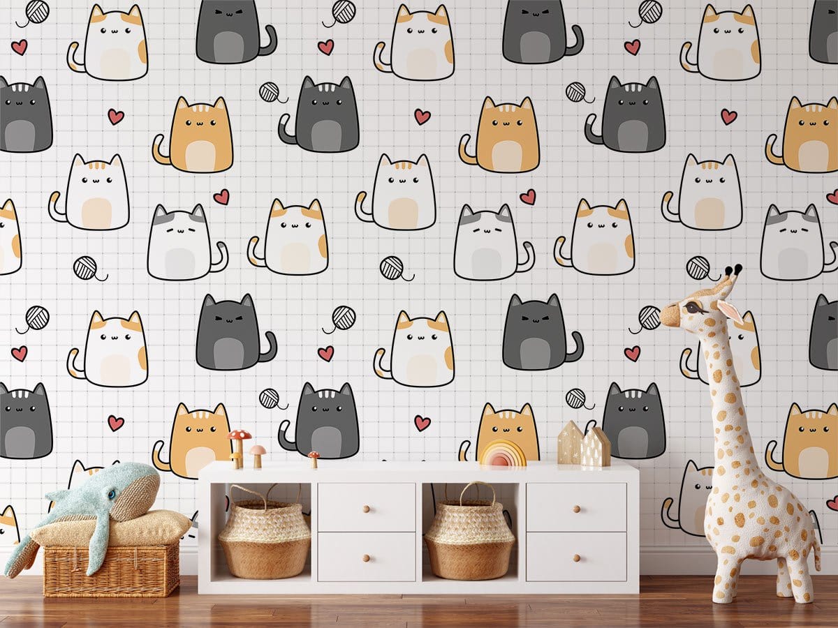 If your children love cats, then this cartoon cat wallpaper mural is heart-melting and perfect for children's room. Our animal wallpaper will never go out-of-style and would make an amazing feature wall in your little one's bedroom or playroom. It's an ideal wall mural for new-borns all the way up to the teenage years.