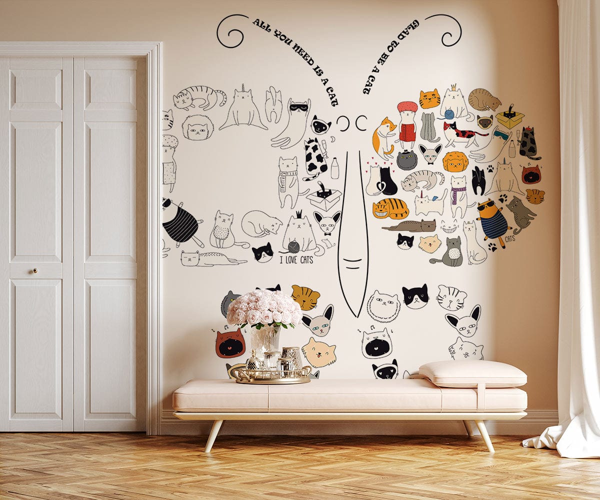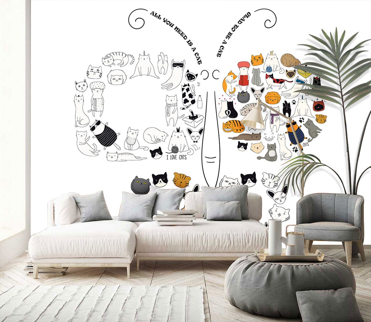 CLove butterflies and cats? See them both at once! This Cat Pattern Butterfly Wallpaper Mural is a unique addition to your home and a great way to have fun with your decor. Designed with the various types and colours of cats set in a large butterfly pattern, this cat wallpaper is great for your home or apartment and suitable for bathroom decoration and bedroom interior. With a fun and unique design, this animal wallpaper can also add charm to your children's room walls and ceiling.