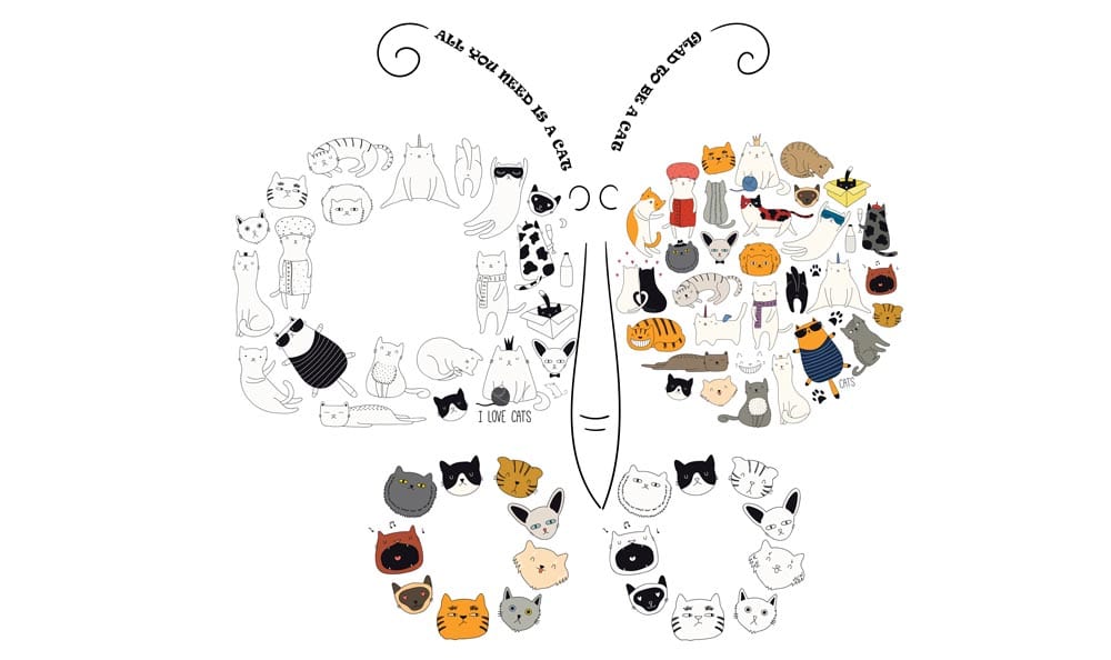 Immerse your space in whimsy and charm with the Cat Pattern Butterfly Wallpaper Mural. This artistic composition features a delicate butterfly woven from playful feline illustrations, set against a crisp background. The subtle play of colours and imaginative design infuses an elegant yet quirky character, perfect for adding a touch of unique personality to any room. Whether you wish to create a focal point or complement existing decor, this mural effortlessly bridges the gap between artistic flair and timeless style.