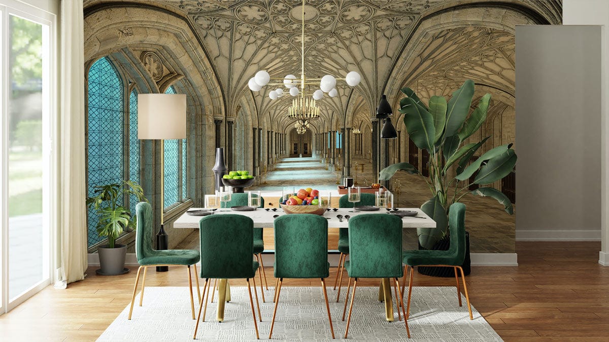 Immerse yourself in the majestic allure of our Cathedral Interior Wallpaper Mural, where the intricate architectural details and soaring arches evoke a sense of grandeur and serenity. The flowing patterns and sophisticated textures create an ambient play of light and shadow, inviting a timeless elegance into various interior settings.
