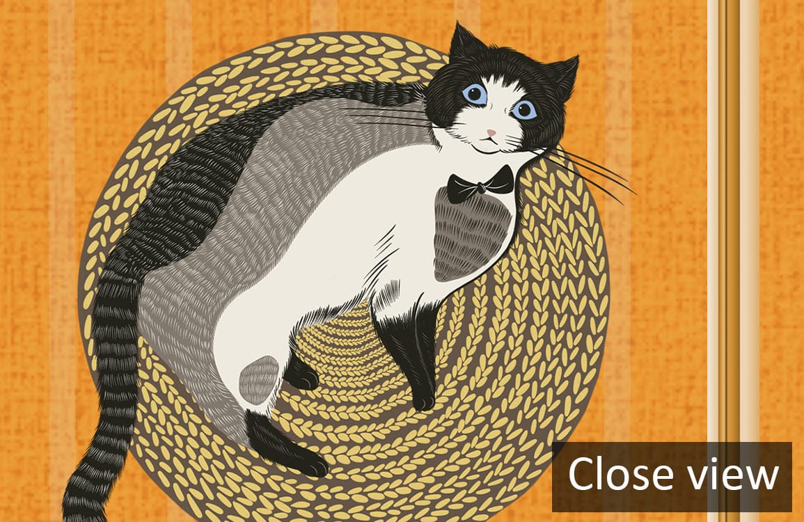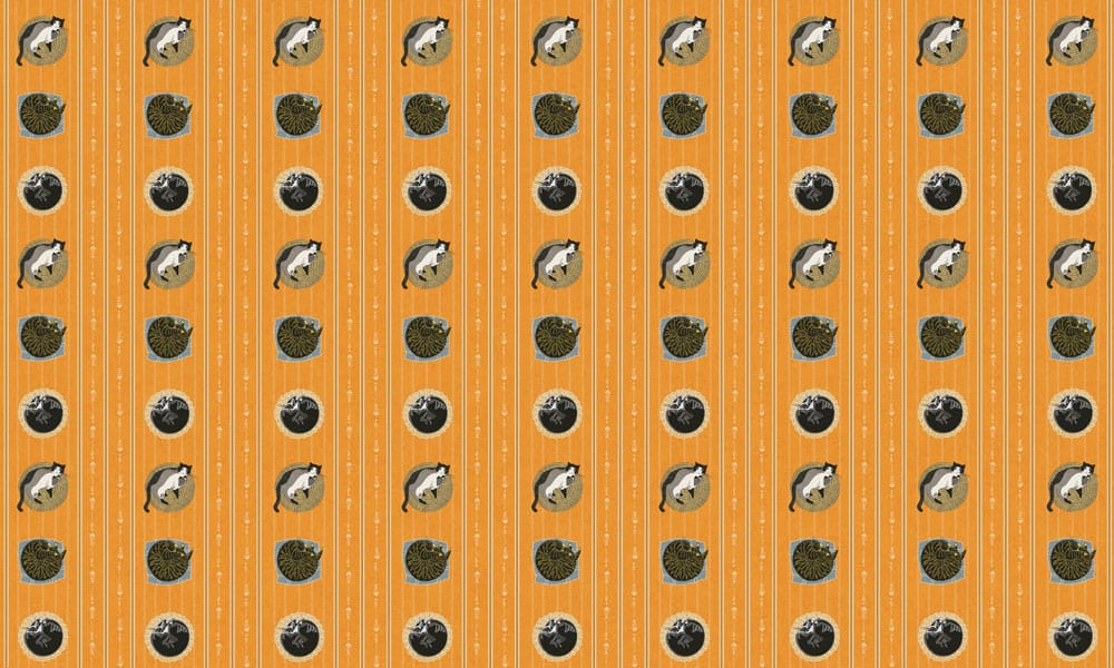 Immerse your space in a whimsical yet refined charm with the Cats' Sleep Wallpaper Mural. Featuring an enchanting pattern of serene feline silhouettes nestled among delicate dots and bold stripes, this design captivates with its harmonious blend of detail and simplicity. Perfectly balancing playfulness and sophistication, it gracefully complements various interior styles and settings.