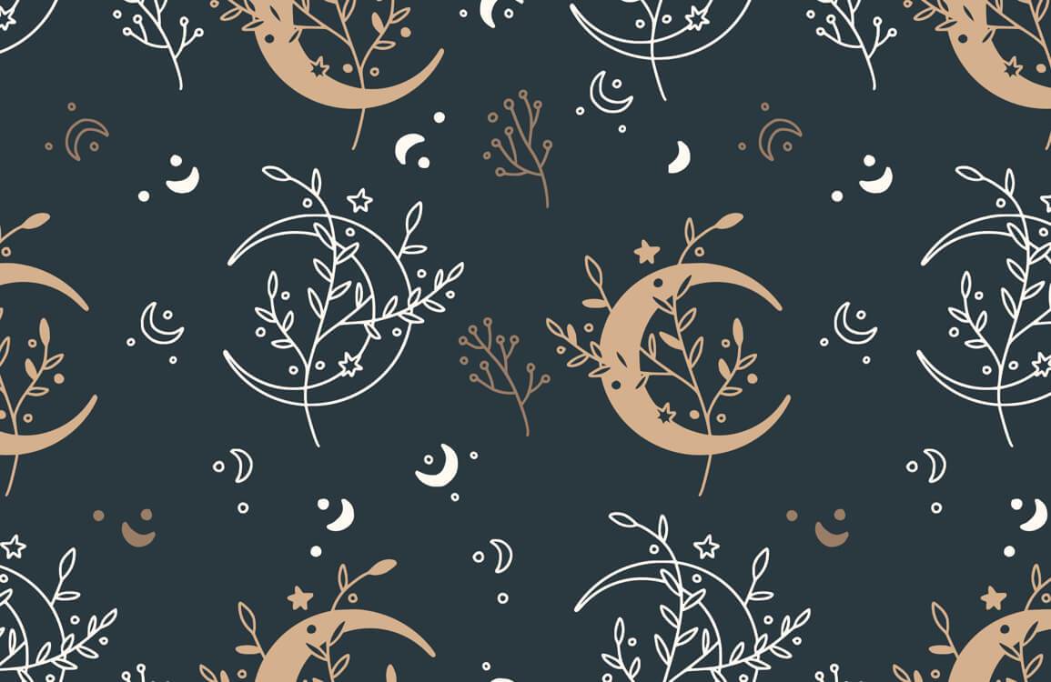 Immerse yourself in the serene beauty of the Celestial Floral Wallpaper Mural, where celestial motifs elegantly intertwine with delicate botanical designs. Set on a deep, inviting backdrop, the lunar crescents and intricate florals bring a sense of wonder and sophistication to any room. This mural creates an enchanting atmosphere, perfectly blending celestial elegance with natural allure, making it a timeless piece for refined interiors.
