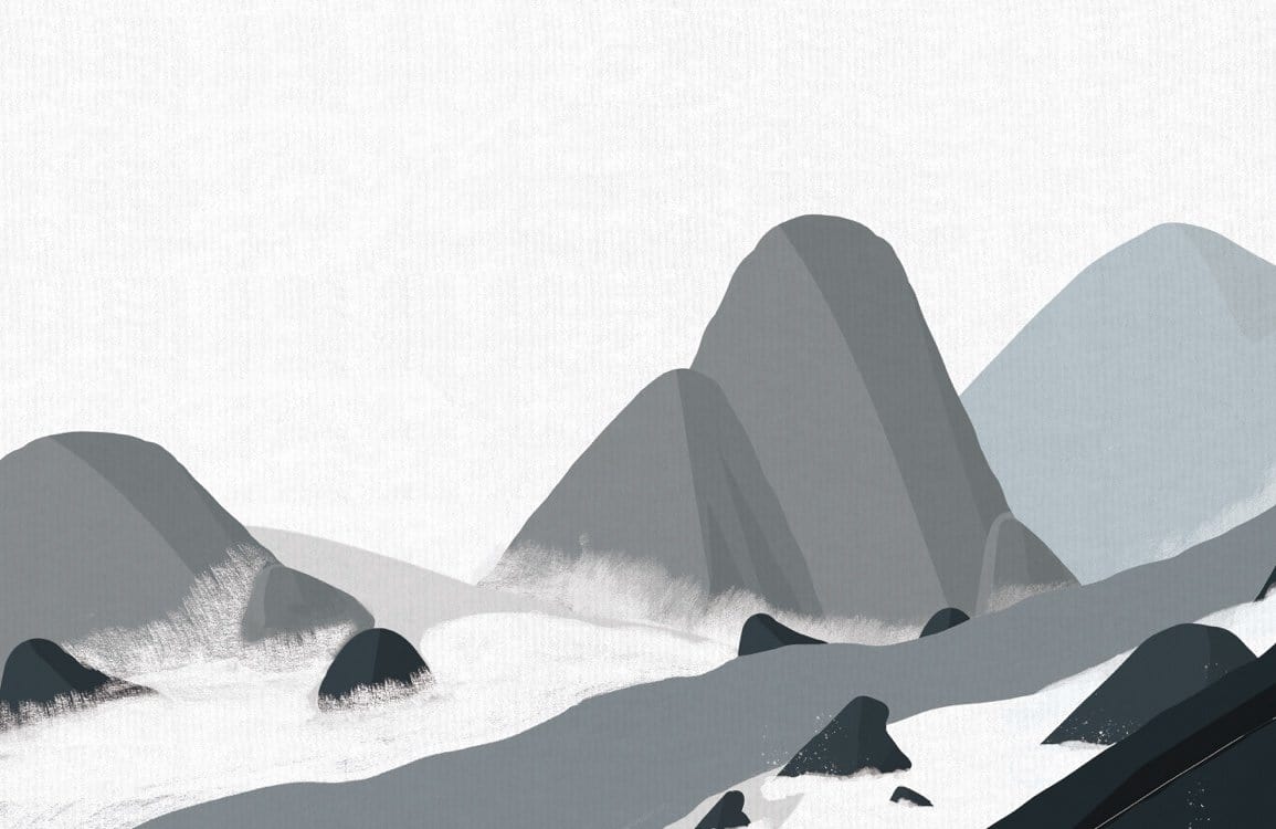 Create a soothing theme at home with this hand-painted neutral grey and blue peaceful mountain wallpaper mural, a versatile design that will work with a range of rooms and styles. The creative design is perfect for expressing your creative style while keeping the space minimal. Why not experiment with this mountain landscape wallpaper in your bathroom, bedroom or hallway.