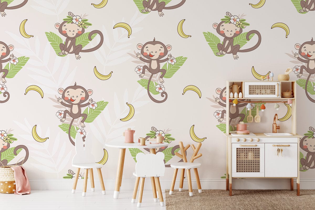 Add a cool vibe to your kids鈥?room with this funky monkey wallpaper mural that will embrace their room with happiness and modernity. The design is so cool for kids who love animals and have energy for playing and discovering. This illustrative design that will help you tell them more about animals and monkey and their jungle life. The design is perfect for both kids鈥?rooms and nurseries. Style it with lite colours of furnishing for relaxing effect and sight comfort