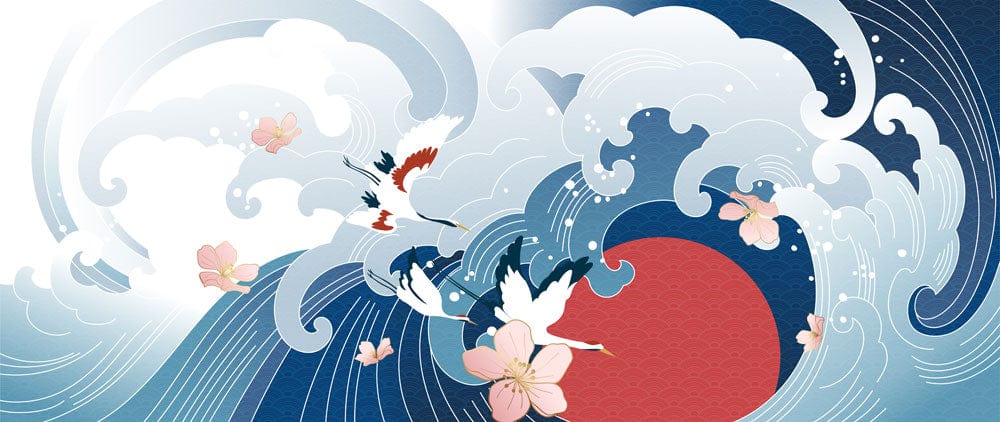 Cherry Blossoms and Ocean Waves Mural Wallpaper