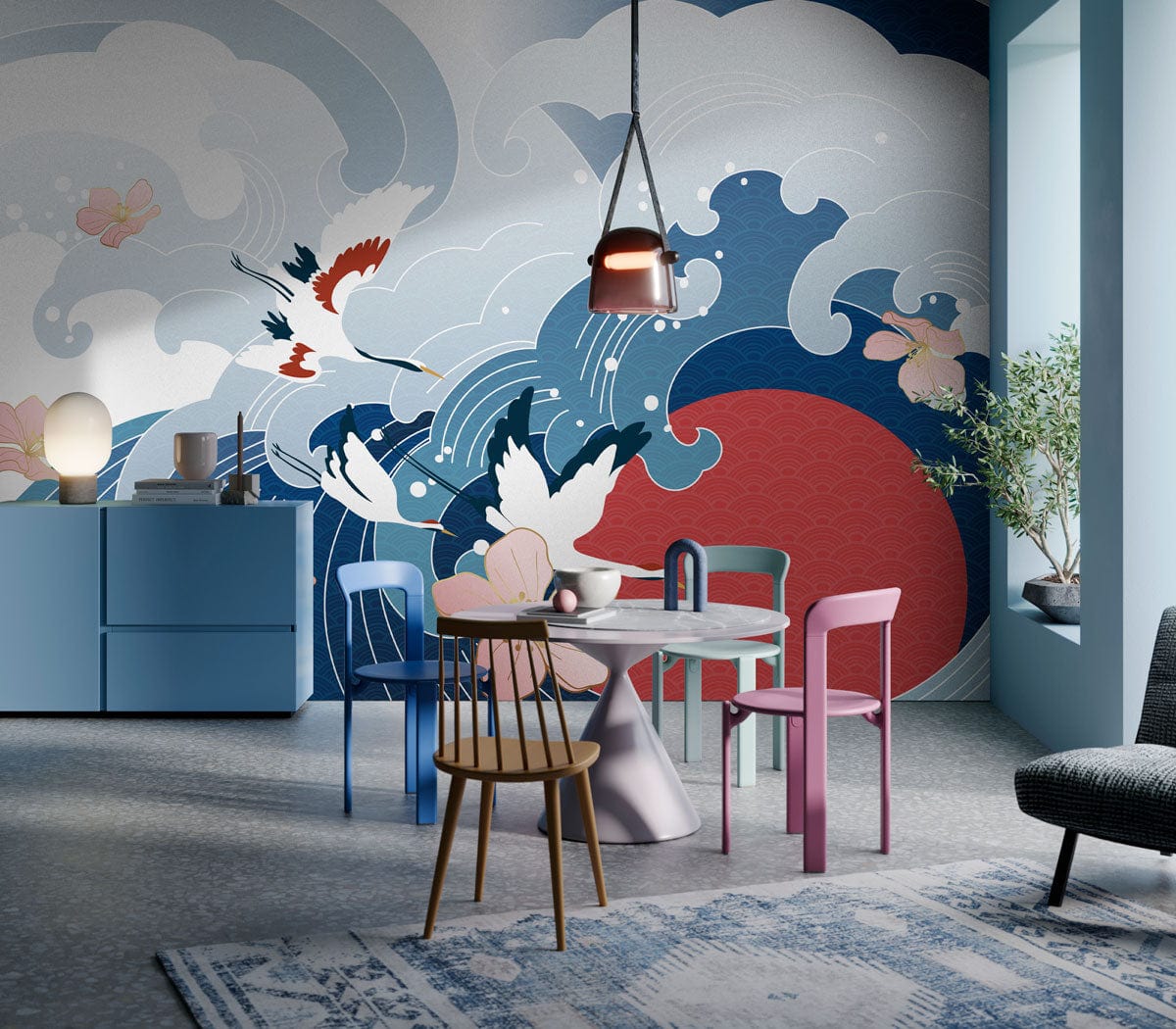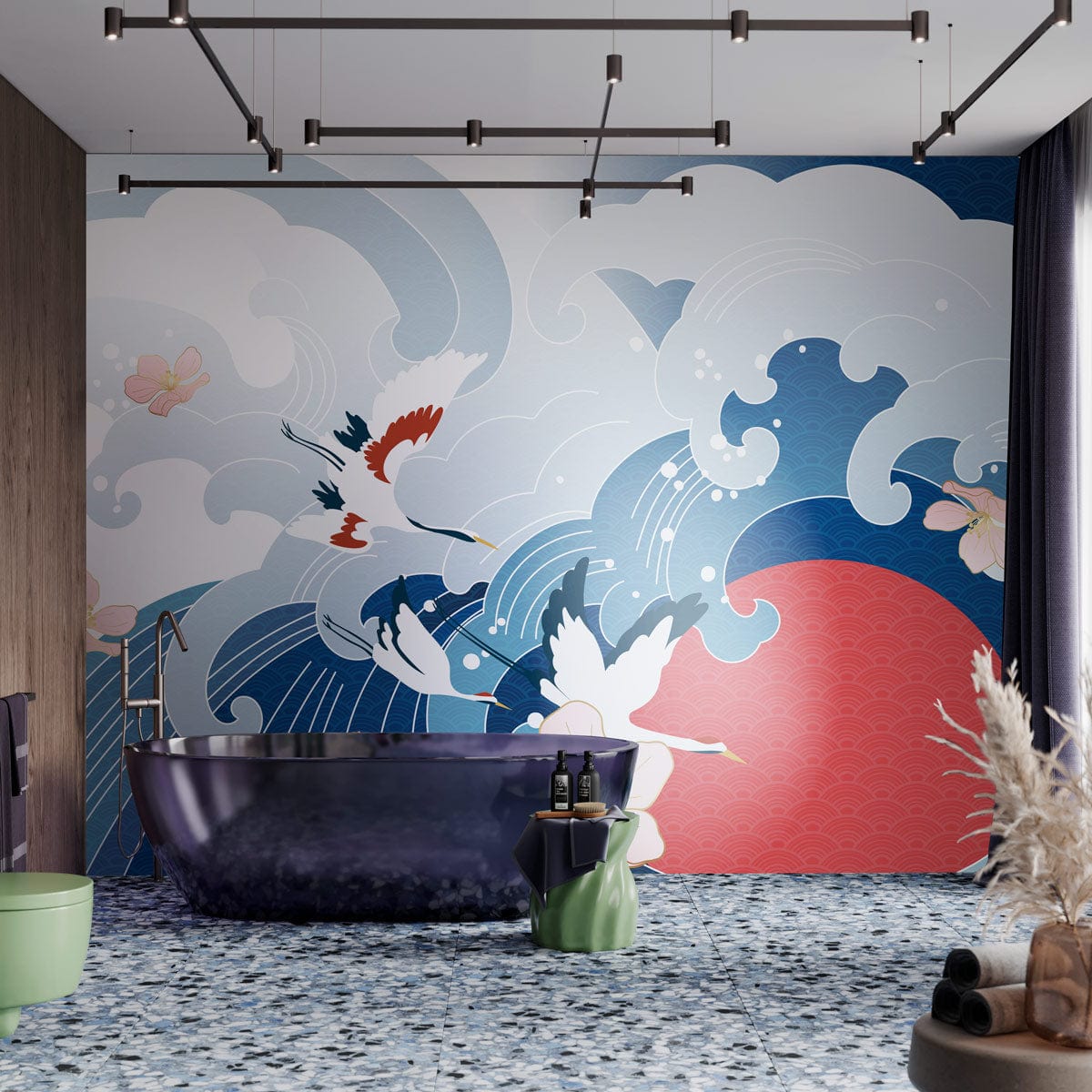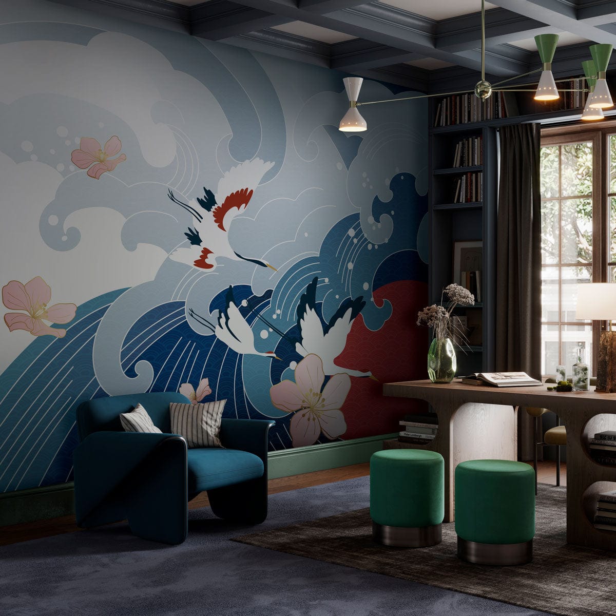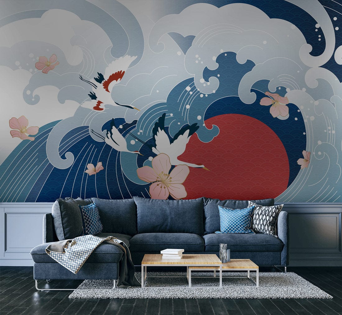 Embrace a symphony of nature with the Cherry Blossoms and Ocean Waves Mural Wallpaper. The design captures the dynamic elegance of ocean waves meeting delicate cherry blossoms, creating a captivating visual narrative. Gentle waves in soothing blues dance around soft pink petals, evoking a sense of tranquillity and movement. This mural's sophisticated artistry and serene palette make it a timeless choice for spaces seeking both beauty and peace.