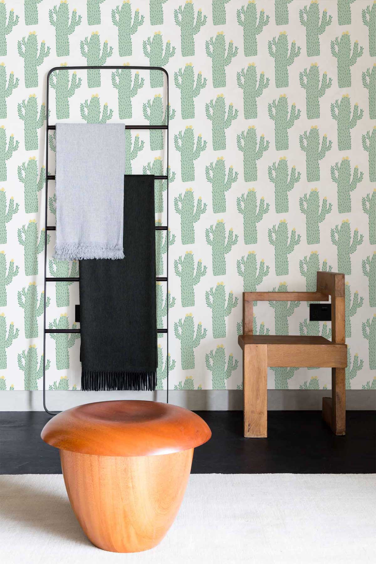 Let your home bloom with our Childish Green Cactus Mural Wallpaper. This mural wallpaper is green, with a translucent vintage cactus pattern, and will be a refreshing addition to your walls. This design is a good decoration for your children's bedroom, nursery, and playroom to create a fun and happy atmosphere in their personal spaces. Its easy-to-peel and stick application allow you to transfer this unique artwork to your walls in no time at all.