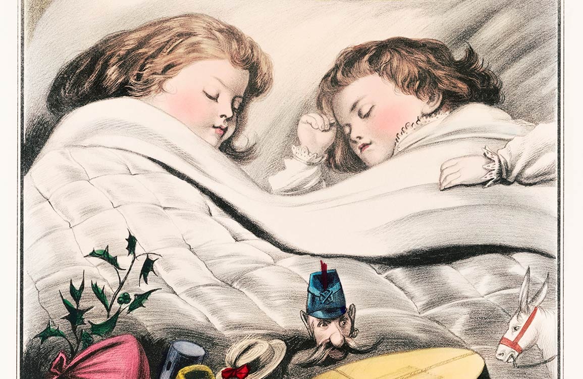 Capture the serene essence of dawn with the Christmas Morning Before Daylight Wallpaper Mural. Featuring two peacefully sleeping children amidst a soft cascade of seasonal imagery, this design weaves a nostalgic narrative through its detailed artistry. The mural's gentle lines and harmonious composition create a captivating focal point that suits both quaint and refined interiors, inviting a tranquil and timeless charm into your space.