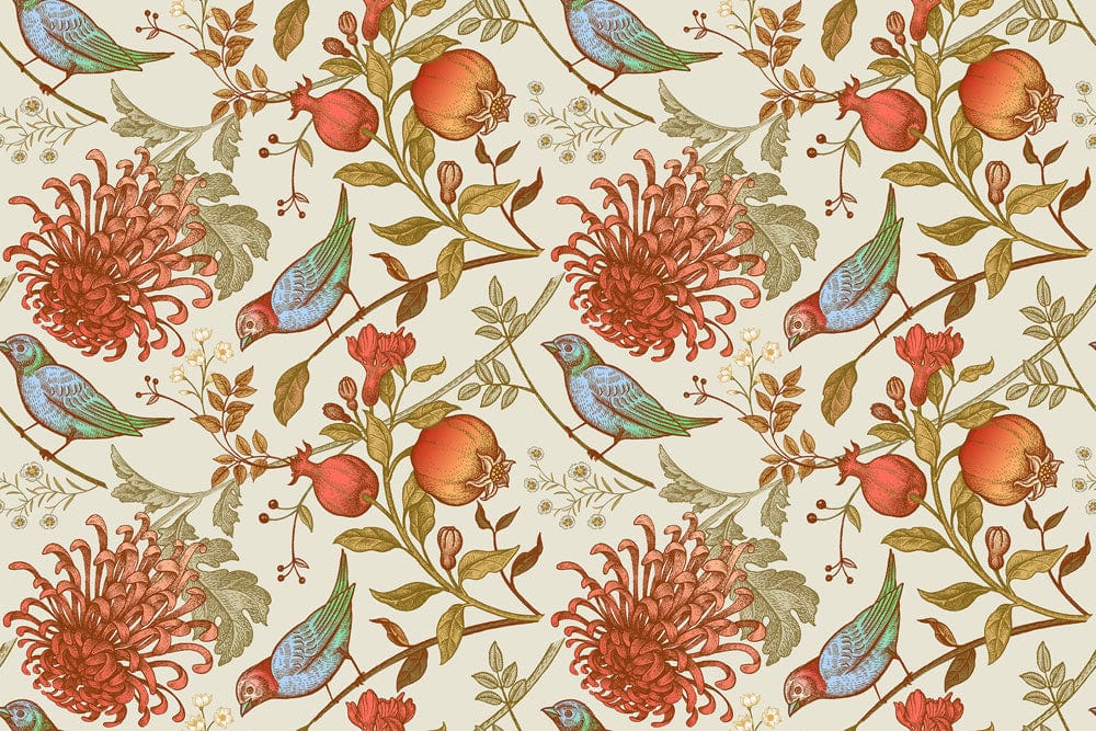 Embrace a tapestry of nature with the Chrysanthemum Wallpaper Mural, where lush blossoms and vibrant birds create a scene of enchanting beauty. The intricate design showcases flourishing chrysanthemums and gracefully detailed avians, capturing a timeless elegance that enriches your space with life and colour. Perfect for the discerning eye, this mural's sophisticated artistry elevates any room, whether a classic parlour or a contemporary den, inviting nature's tranquillity indoors while maintaining a refined ambience.