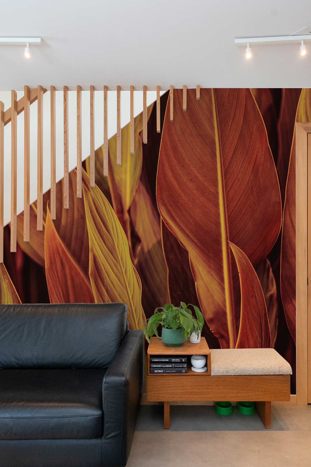 Immerse your interior in the rich tapestry of the Cigar Flower Leaves Wallpaper Mural, where elegant foliage unfurls in exquisite detail. The mural features bold, overlapping leaves infused with deep autumnal hues, creating a subtle play of light and shadow that evokes a sense of depth and warmth. Its sophisticated design seamlessly integrates into a multitude of settings, offering a refined backdrop to both classic and contemporary spaces.