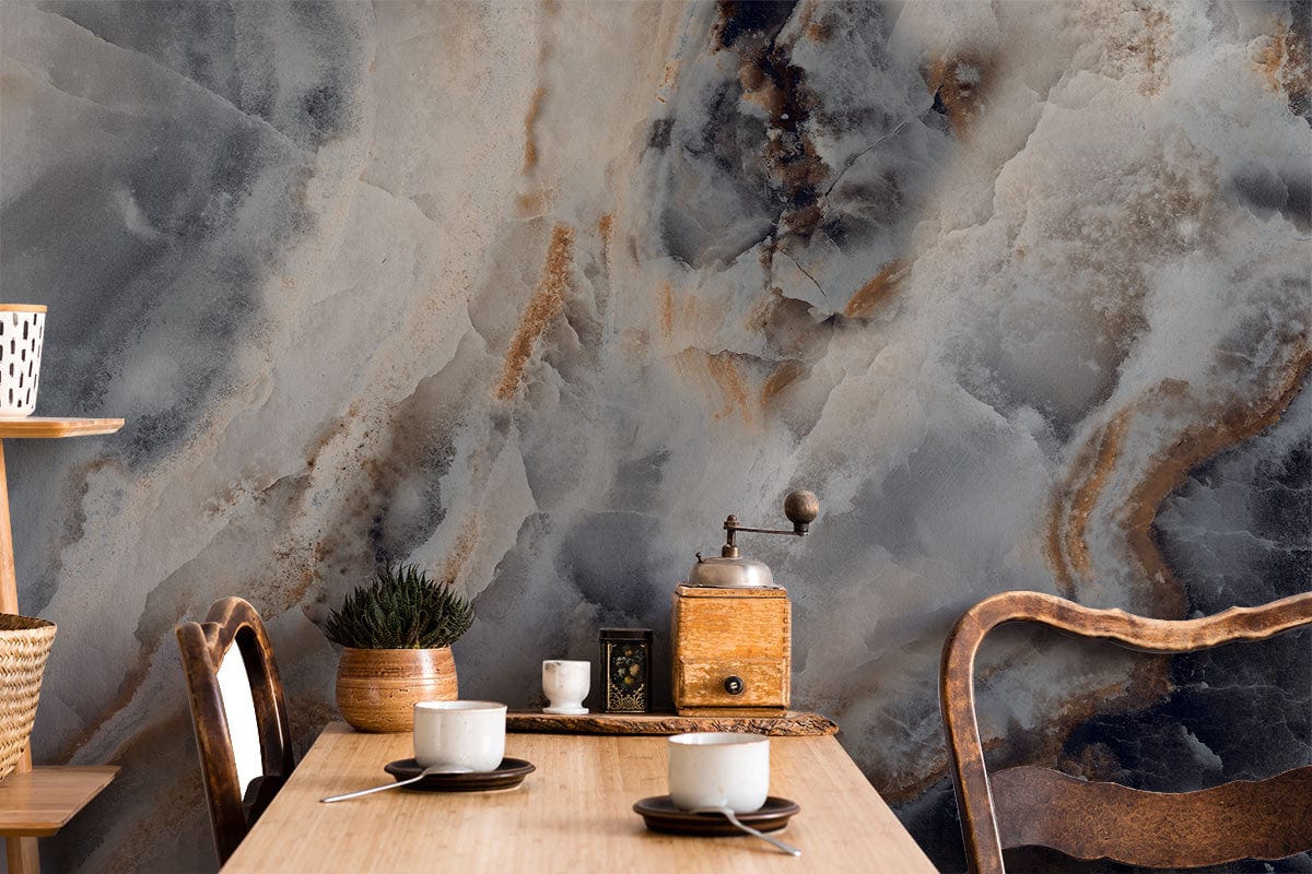 The Cloudy Crystal Geode Wallpaper Mural introduces an exquisite symphony of swirling marble textures, mirroring the organic elegance of geode formations. Its subtle interplay of hues and fluid shapes creates a captivating focal point, perfect for adding a layer of sophistication to any interior. This mural seamlessly integrates with diverse décors, infusing spaces with an air of timeless luxury and artistic allure.