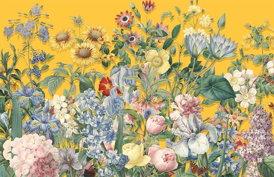 Transforming your walls into works of art, this Bouquet Wallpaper Mural is a great way to add style, colour, and fun to any room. The flowers are made up of poppies and hydrangeas that look like they're bursting out of the wall. This yellow flower design will make you feel happy just by looking at them, especially if you love nature-inspired prints. It is highly versatile and can be cut in any shape to complement any interior style from country chic, cottage, or contemporary. If you want to create an eye-catching feature wall, then this beautiful and affordable mural is a must-have for your home!