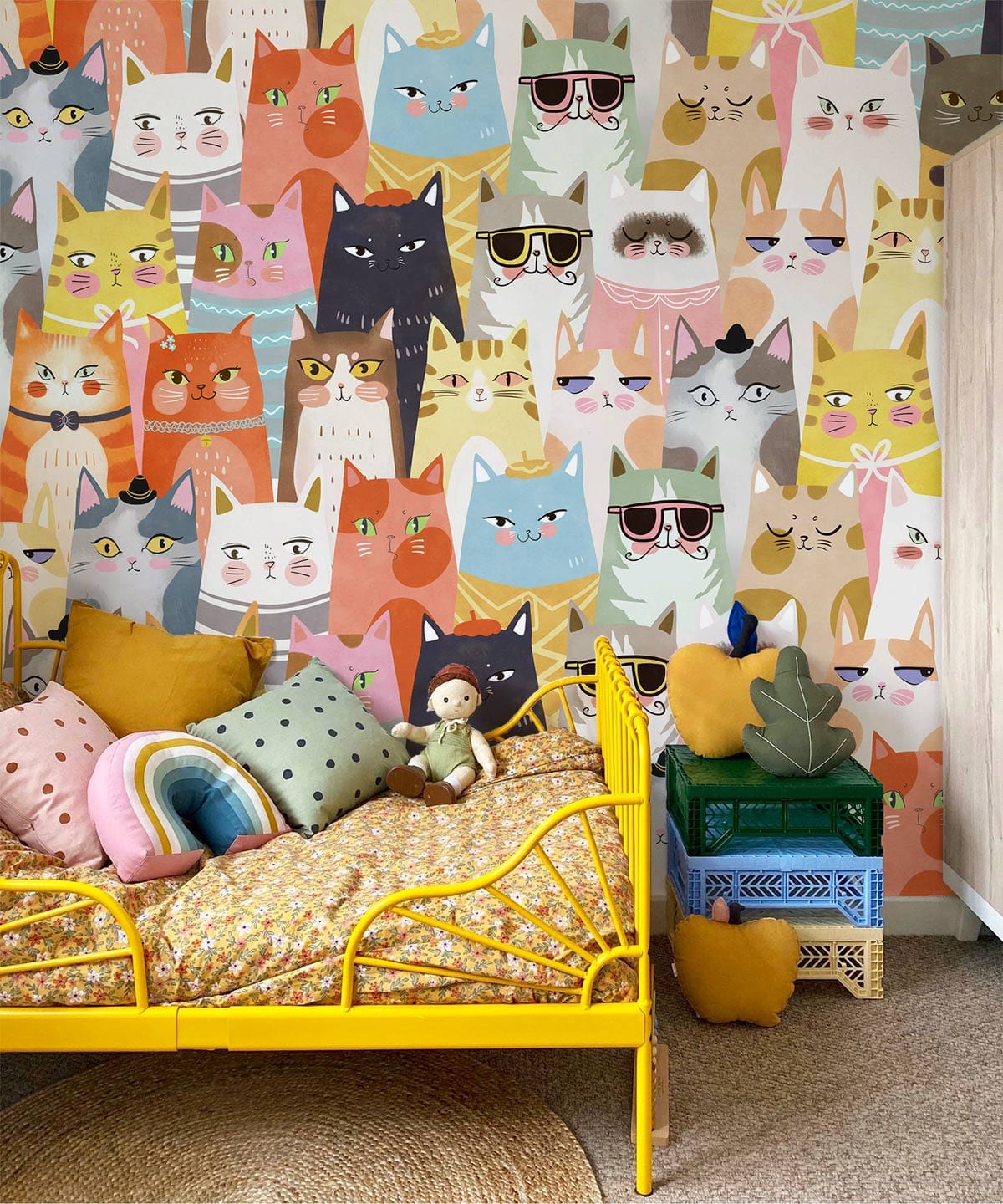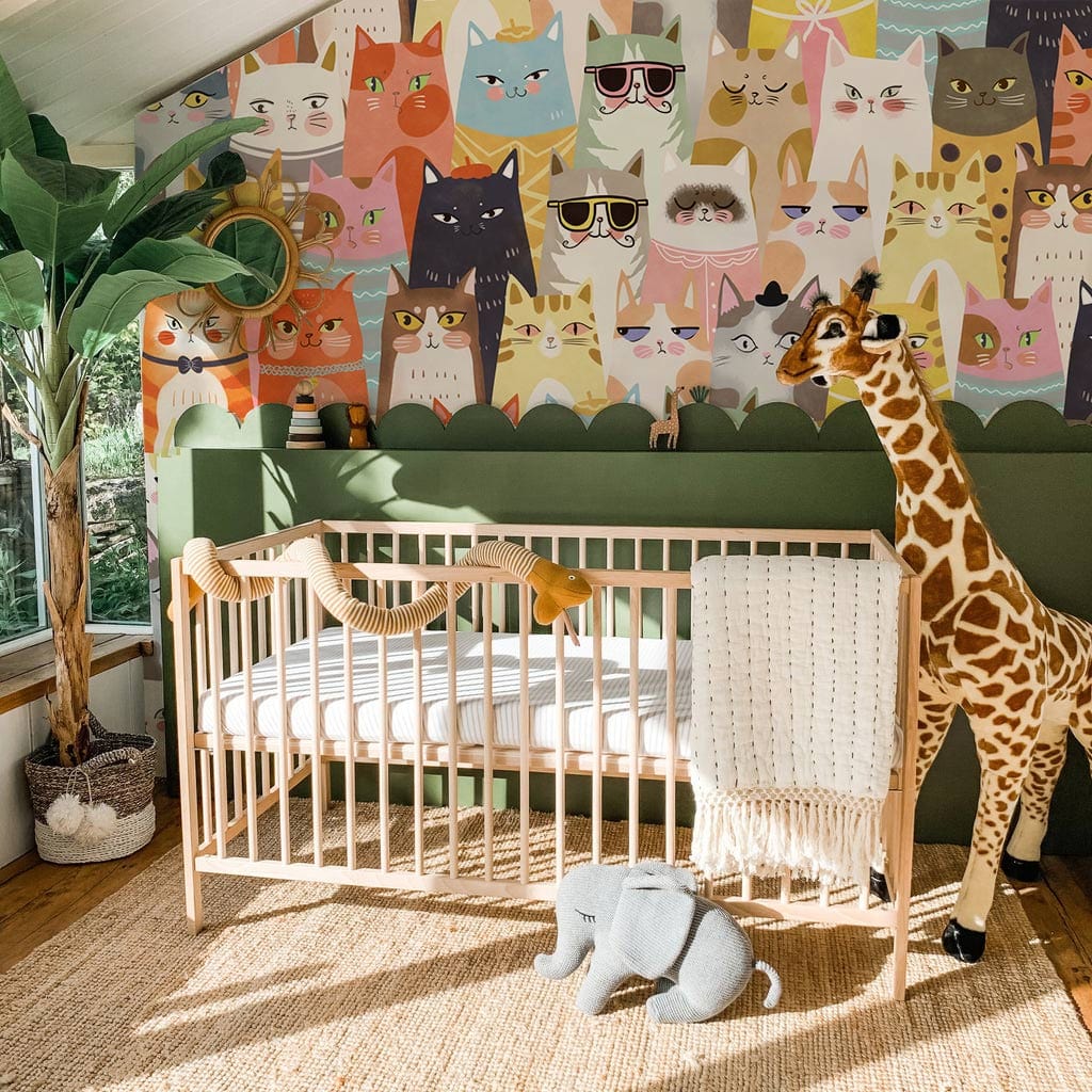 Get ready for a purrrfectly delightful decor with the Colorful Distinctive Cats Wallpaper Mural. The best of both worlds, this nursery wallpaper mural features authentic feline patterns in a rainbow of colours and decorative cats that will make you smile. This cat wallpaper design adds a modern twist to classic wall art, creating a stylish look that your kids will enjoy!