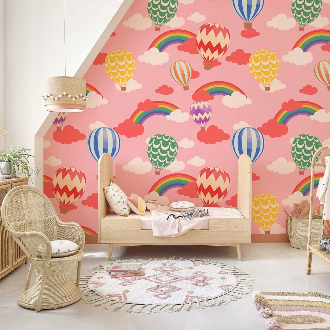 Bring some whimsical style to your walls with our hot air balloon mural wallpaper. With this colourful mural design of hot air balloons against a rainbow and cloudy background, you can create a dreamy escape from the everyday realities of work and home life. But highly-deal for children's rooms and nursery, this wallpaper mural will give your room a festive atmosphere and fun makeover. Create a space that's a piece of art with your little imagination and bring the colourful world of hot air balloons to life.