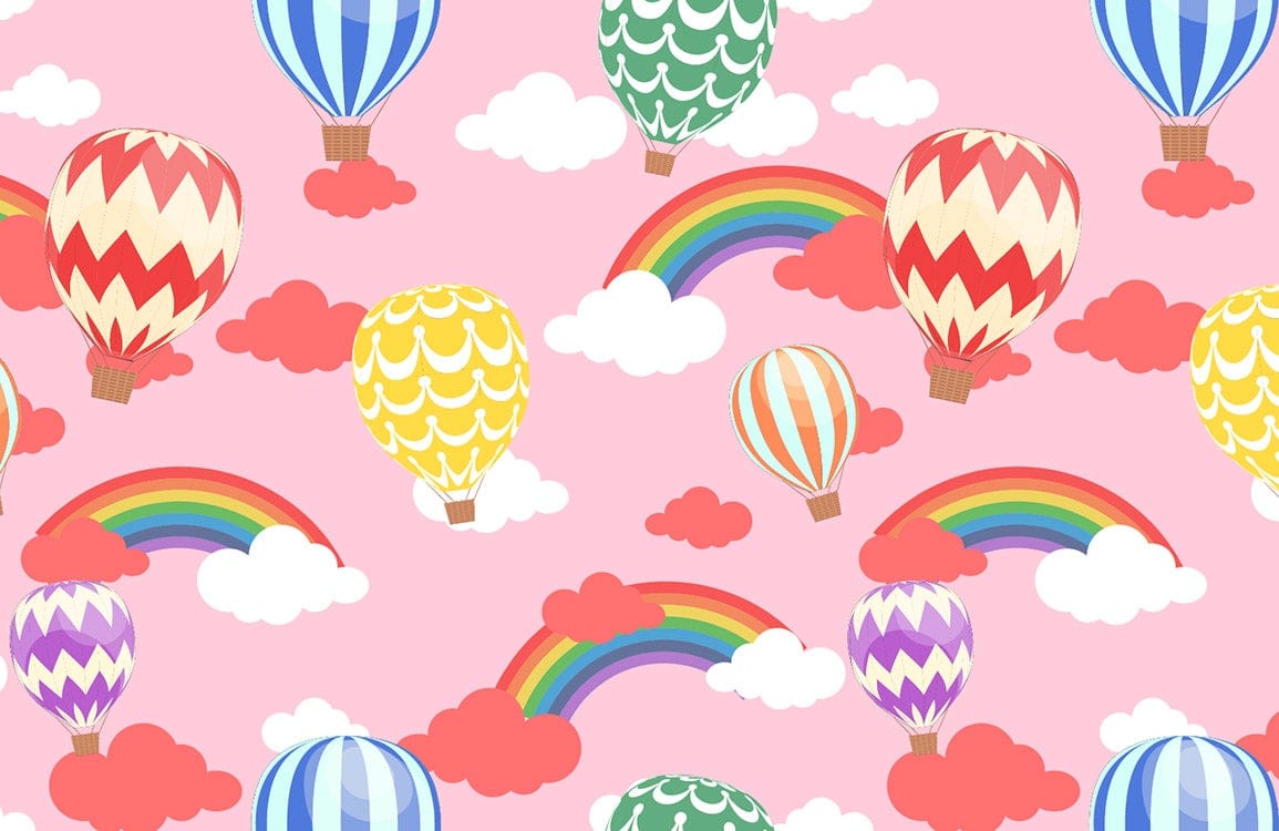 This Hot Air Balloon Wallpaper Mural captures a sense of whimsical adventure, featuring a lively array of hot air balloons sailing amidst fluffy clouds and vibrant rainbows. Its playful yet sophisticated design, with intricate details and charming textures, suits various interiors, adding a dynamic flair to any room.