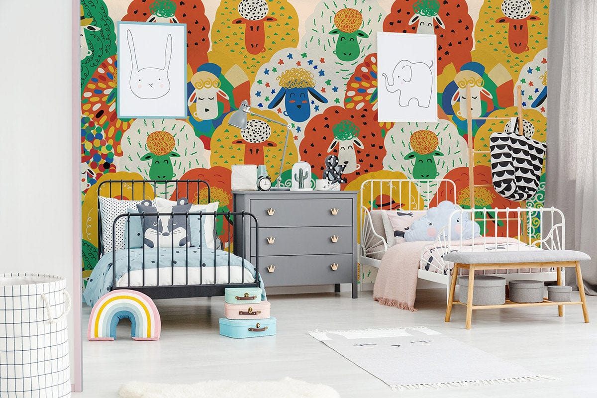 Your child's bedroom will look lovely with our Colorful Lambs Wallpaper Mural. This nursery wallpaper mural is a cheerful and colourful way to bring some pleasure to your young one's room because it has a lovely pattern of playful lambs. To complete your home's distinctive and opulent aesthetic, choose this animal wallpaper mural for your interior design to give your walls some warmth immediately.