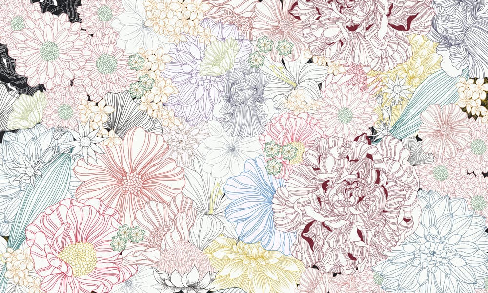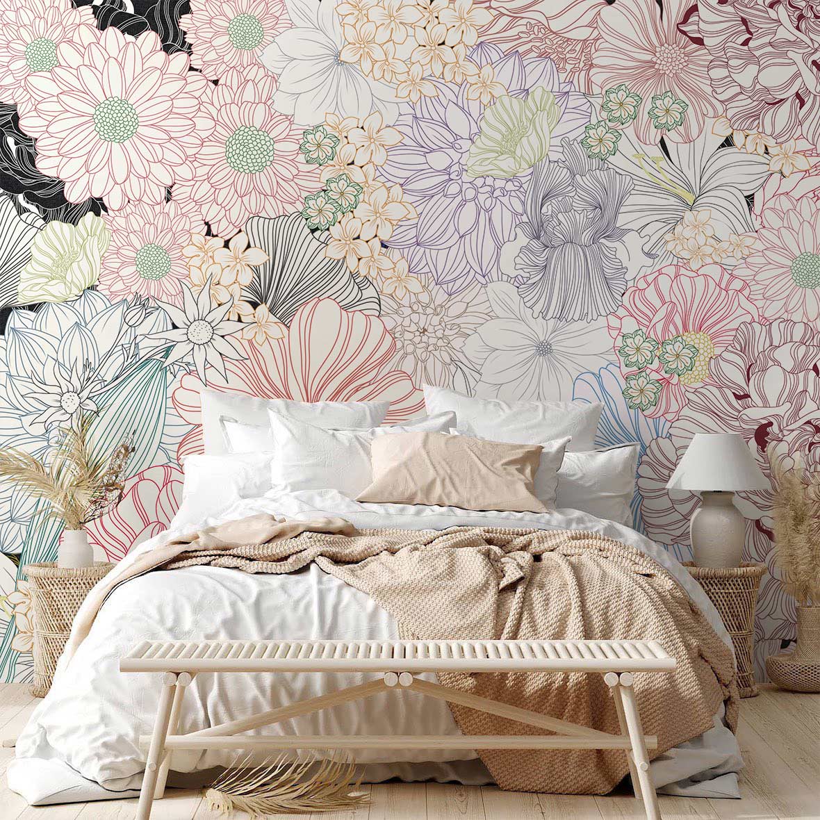 Experience the intricate elegance of the Colorful Linedrawn Flowers Wallpaper Mural. This stunning design features an array of delicately sketched blooms, capturing a symphony of floral motifs with artistic precision. Immerse your interiors in a sophisticated palette of subtle hues, interwoven with soft pastels and rich details, making it an ideal backdrop for living spaces, bedrooms, or even a stylish office. The mural's timeless charm and artistic flair seamlessly complement both modern and vintage aesthetics.