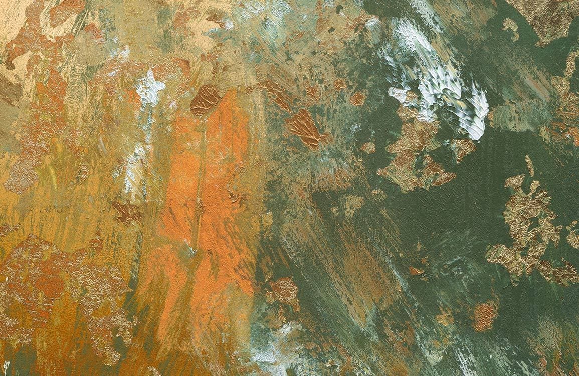 This exquisite oil painting wallpaper mural captures the intricate brushstrokes and rich textures of a masterful abstract artwork. It features a harmonious blend of deep forest greens, warm bronze hues, and shimmering metallic accents, evoking a captivating elegance that complements both classic and contemporary interiors. Its nuanced design and tactile depth create a sophisticated ambience, enhancing any living space with a touch of artistry and timeless charm.