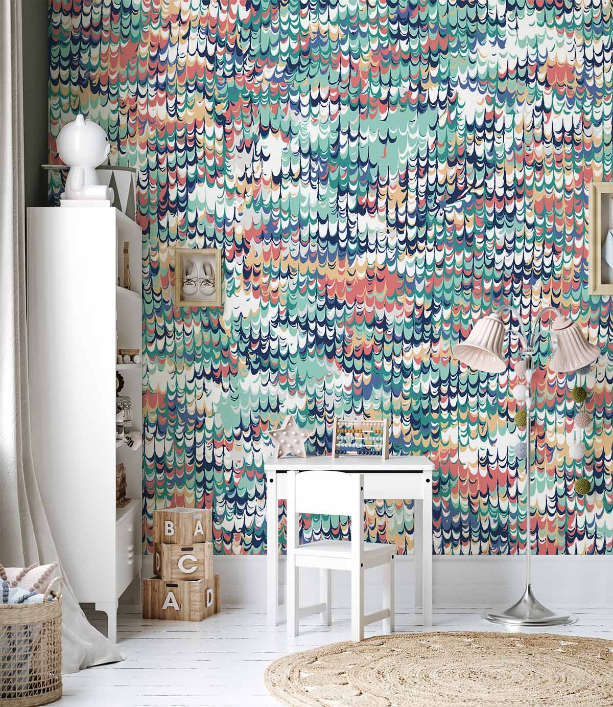 Our Colorful Texture Wallpaper Mural will make your boring wall or ceiling a statement piece. Featuring a bright and colourful geometric design, this mural is perfect for any room in the house, from the bathroom to your home office. A decorative and sophisticated pattern, this multi- coloured wallpaper is ideal for adding style to your child's bedroom or as a fun feature wall in the living room. Modernize your space'sdecor with this lively and modern wallpaper mural now!