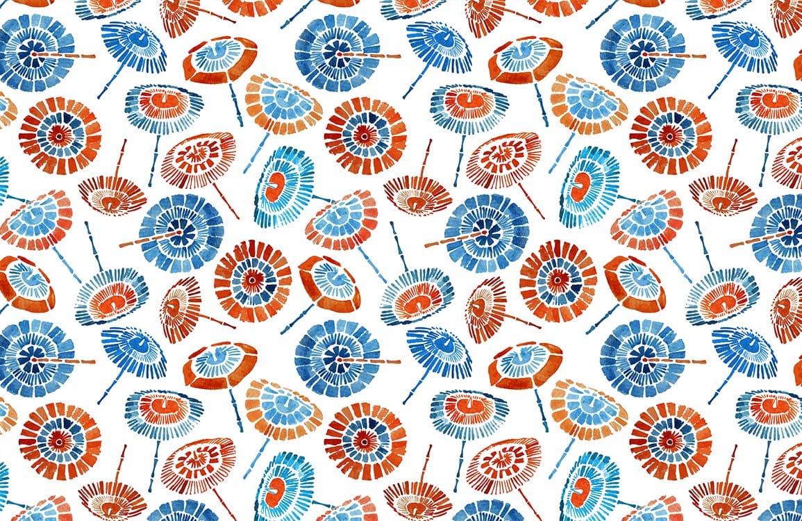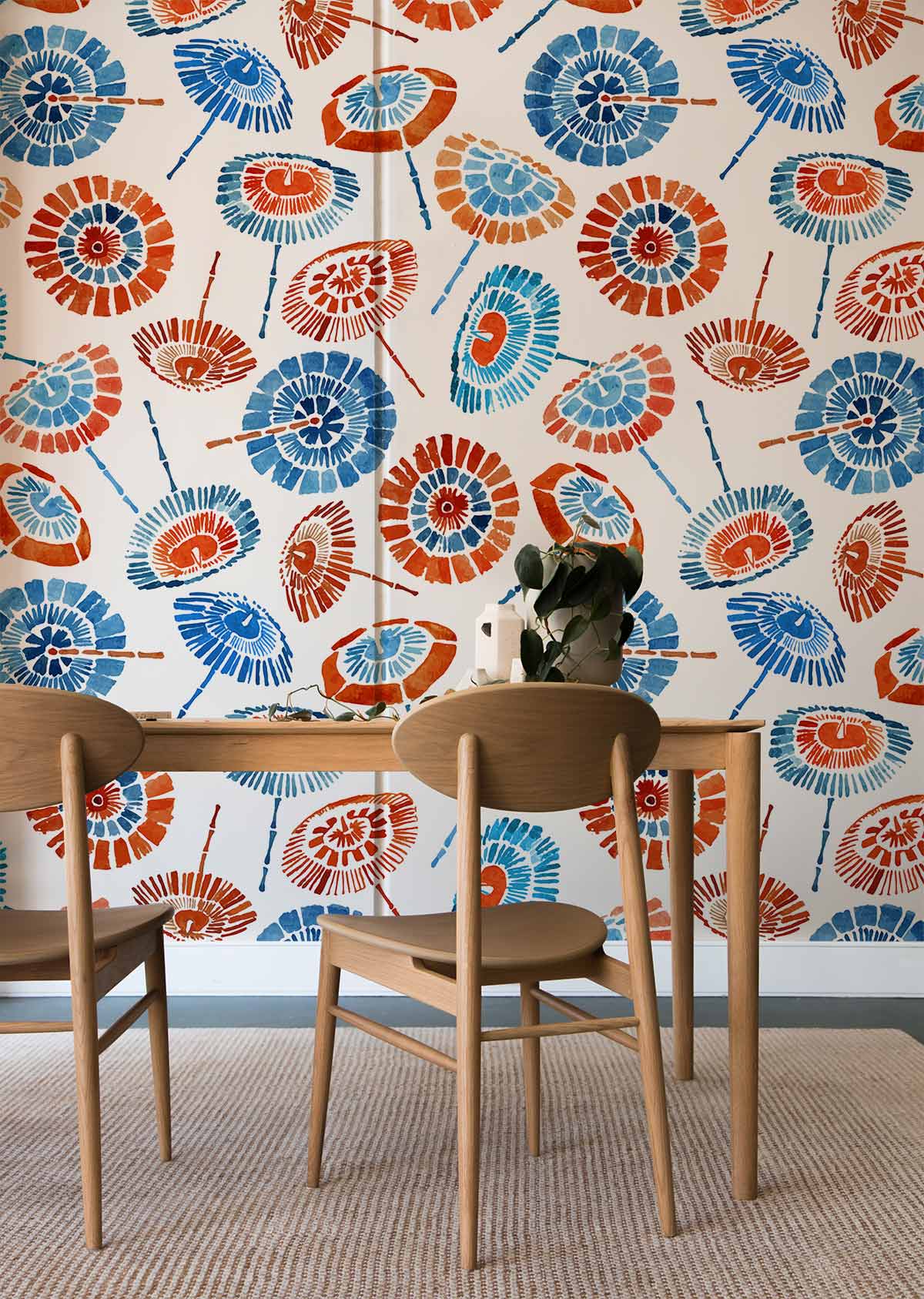 Your walls will be the talk of the town with this Colorful Umbrella Photo Mural. The playful and fun design is inspired by traditional Japanese summer umbrellas, adding a pop of colour to any room in your home. The pattern looks like vivid red and blue colour umbrellas set out on the beach and sand, complete with blue skies and white clouds. Perfect for your kids' room or nursery, this wallpaper mural is also a cheerful addition to any dining room or hallway.