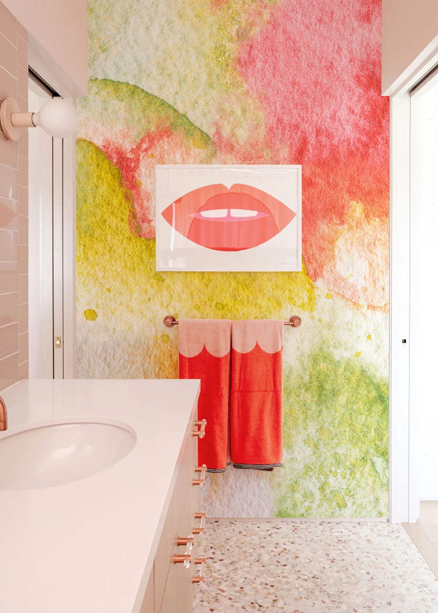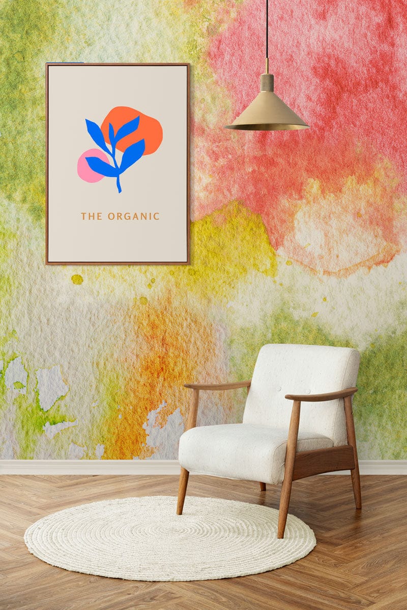Immerse your space in the fluid elegance of this Colourful Watercolor Texture Wallpaper Mural. With its sweeping hues of vibrant green, warm yellow, and rich coral, the design evokes a serene, painterly ambience that is both expressive and calming. Each brushstroke seamlessly blends into a harmonious tapestry that embodies artistic sophistication, making it a perfect fit for a range of interiors.