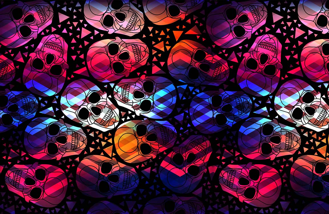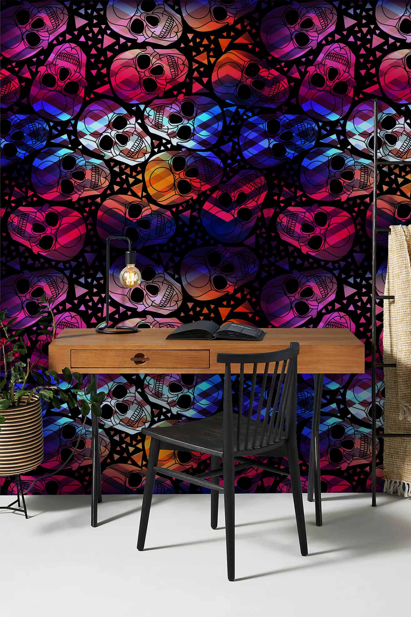 This lovely pattern is for you if you like skulls and skeletons. On a plain dark background, our skeleton painting pattern mural wallpaper features purple and pink ombre- coloured skull bones topped with dramatic shutter effects. The skeletons in this artwork is created with bold, forceful lines. This distinctive design can make you swoon with skeletal crafts and is sure to be a discussion starter amongst your company. It's especially suitable for anyone who likes to hang out in the living area and bedroom.