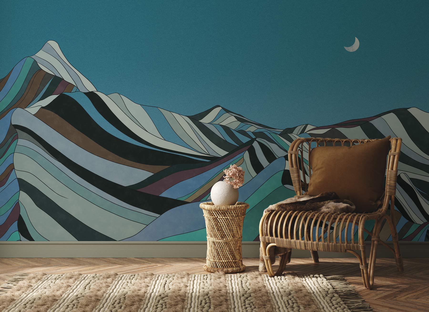 Discover the allure of majestic peaks with the Colourful Mountain II Wallpaper Mural. This captivating work of art melds striking abstract patterns with natural contours, layered in harmonious shades of teal, charcoal, and muted lavender. Its bold yet serene aesthetic creates a tranquil vista, inviting an air of sophistication suitable for both contemporary and classic settings. The intricate detailing and depth lend an exquisite touch, making it a perfect backdrop for versatile interior designs.