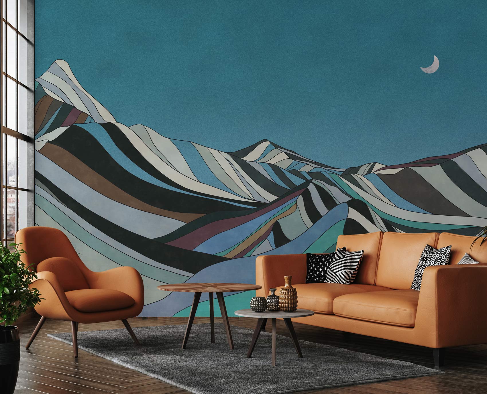 Transform your bland wall into this amazing colourful mountain wallpaper mural. Be impressed by the beautiful layers painted in various colours, which will surely splash some colours and spice up your space. Perfect wall mural to use in your living room, bedroom or hallway.